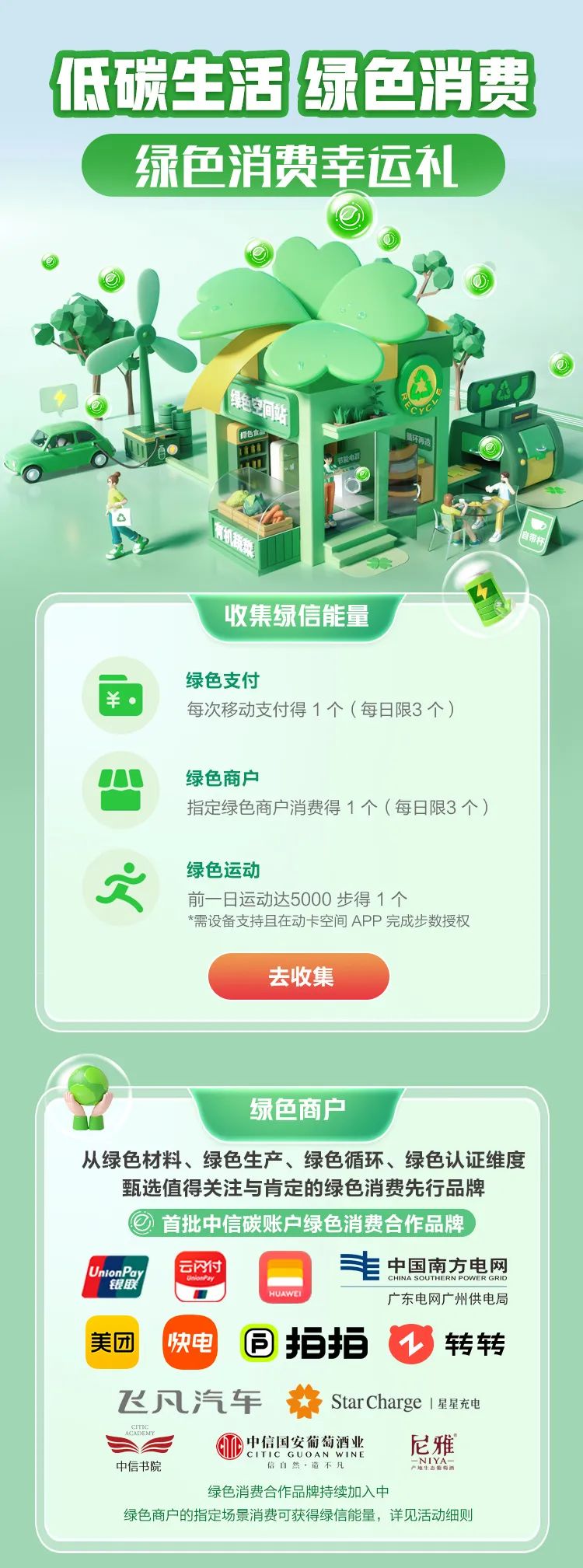 登陆“中信碳账户”,积极参与中信银行信用卡系列绿色消费活动,即有机会兑换尼雅葡萄酒及更多好礼,尽享低碳生活、绿色消费。