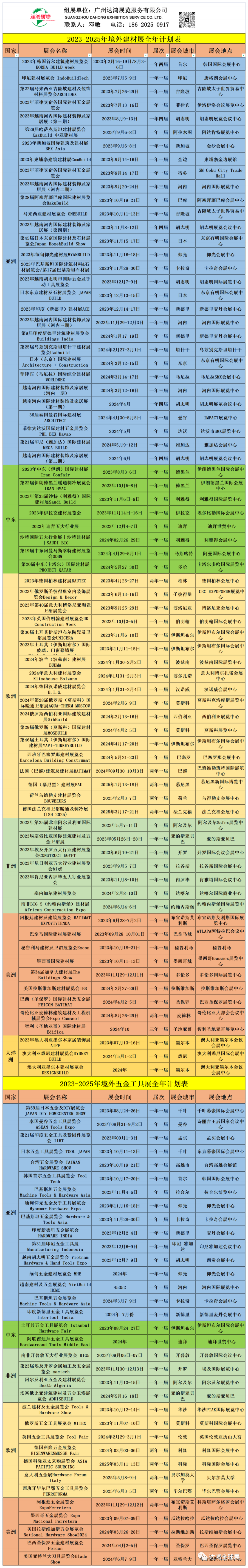 2023-2025年建材及五金境外展会排期表,请查收!!!