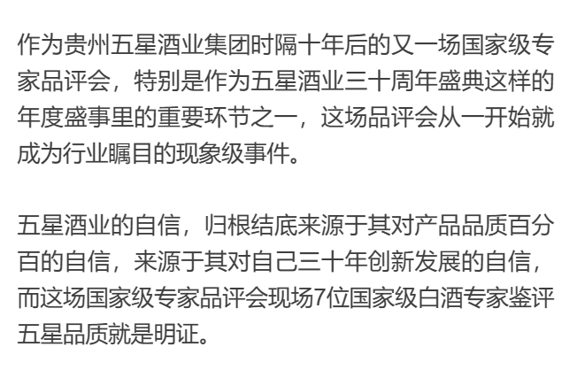 以质立星 以星立命。如何证明?2023年,贵州五星酒业集团通过一场国家级专家品评会给了我们答案。