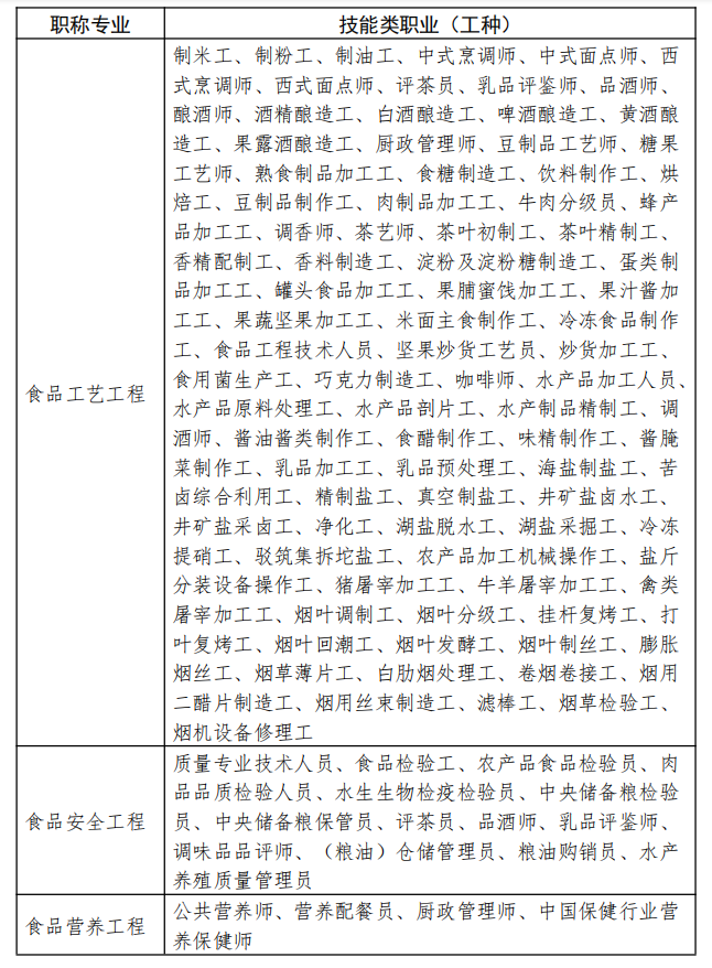 食品工程领域高技能人才按照取得的职业资格或职业技能等级可分别申报本专业助理工程师、工程师、高级工程师的职称评审。