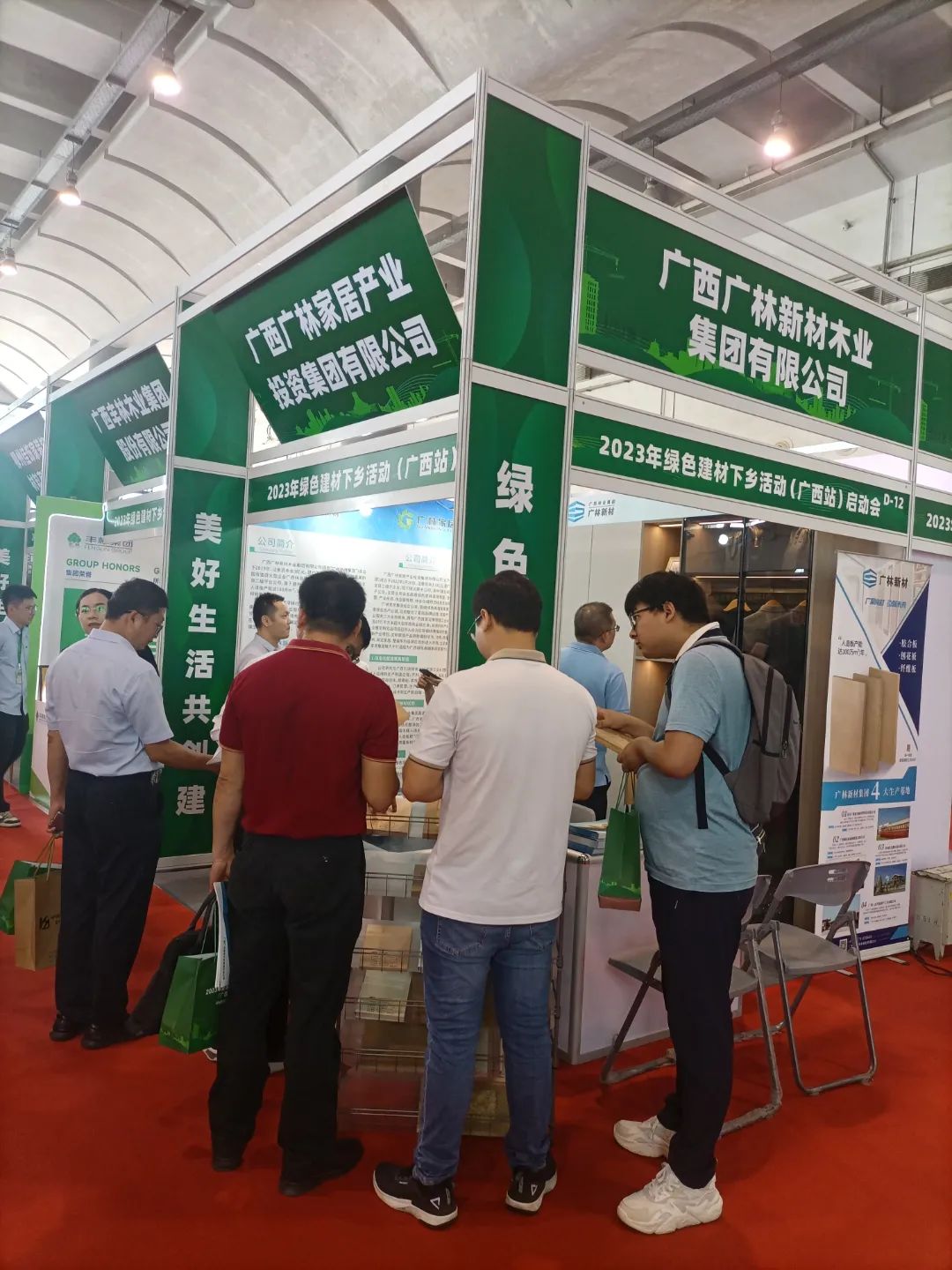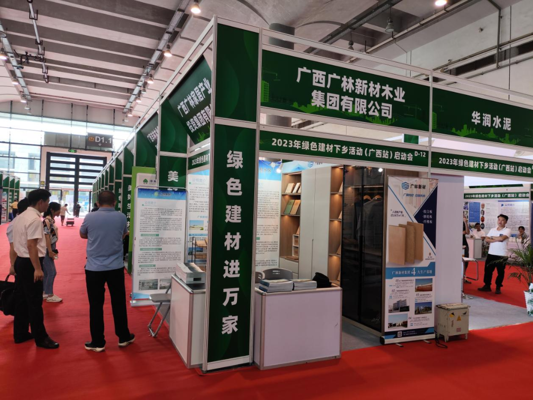 2023年7月12日至13日,2023年广西绿色建材产品展销会在南宁国际会展中心隆重举办,广林新材集团联合广林家居集团共同参展,向市场展出了广林新材集团无醛海洋胶合板、B1级可饰面定向刨花板、碳晶板、广林家居集团定制衣柜等无醛绿色板材、家具,引领绿色家装新风尚。