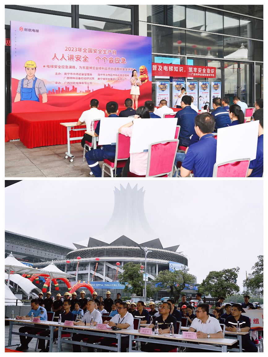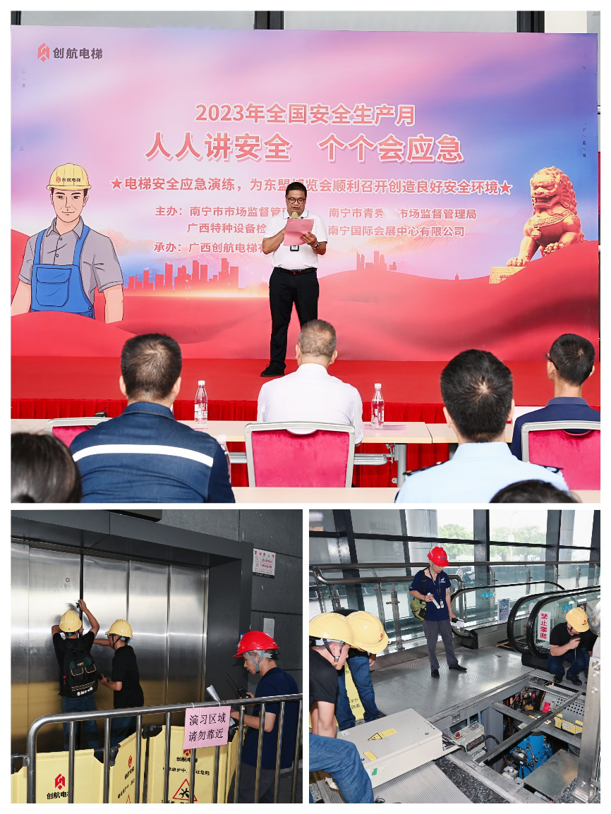 为深入落实安全生产月相关要求,以实际行动提高服务保障第20届东博会的能力水平,提高会展中心应对电梯突发故障的应急处置实战能力,6月26日,博览集团下属会展中心公司联合南宁市市场监督管理局、南宁市青秀区市场监督管理局、广西特种设备检验研究院和广西创航电梯有限公司共同开展电梯困人应急救援实战演练。