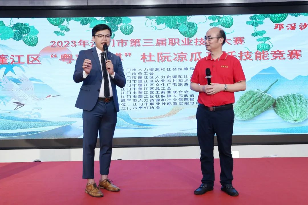 当日下午,应江门市烹饪协会邀请,考察团出席了2023年江门市第三届职业技能大赛蓬江区“粤菜师傅”杜阮凉瓜烹饪技能竞赛。江门厨师将杜阮凉瓜运用得“出神入化”,以杜阮凉瓜为主食材,创作出数百道创新菜。考察团代表表示,通过本次观摩学习,让他们在菜式创作、摆盘等得到了很大的启示。