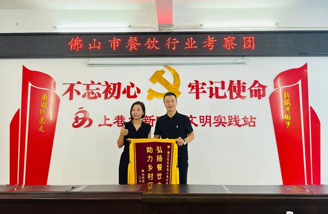 佛山市饮食同业商会赠送友好合作锦旗给杜阮镇上巷村委
