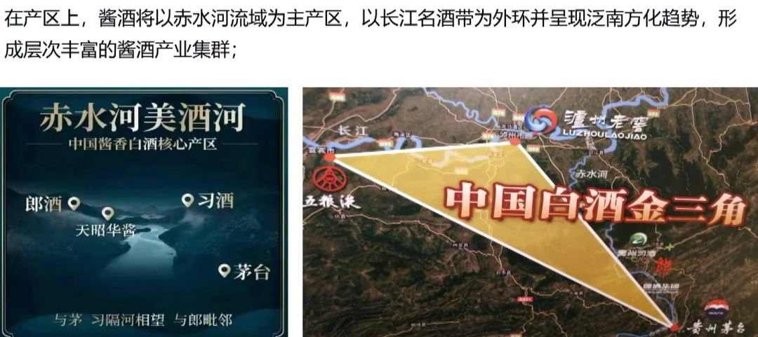 从区域上看,在泸州、宜宾、遂宁、大邑、邛崃等地均有酱酒企业分布,形成了包括郎酒、潭酒、川酒集团等代表的酱酒企业。值得一提的是,泸州古蔺产区,与茅台同处赤水河49平方公里核心酿酒区,共享着世界上最适合酿造酱酒的生态环境和酿酒条件,两岸酱酒同出一源。