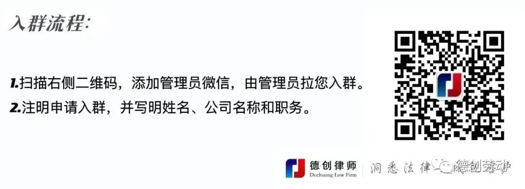 欢迎各位HR和法务加入企业劳动用工法务专业咨询群,每日推送最新法律政策及劳动用工问答。