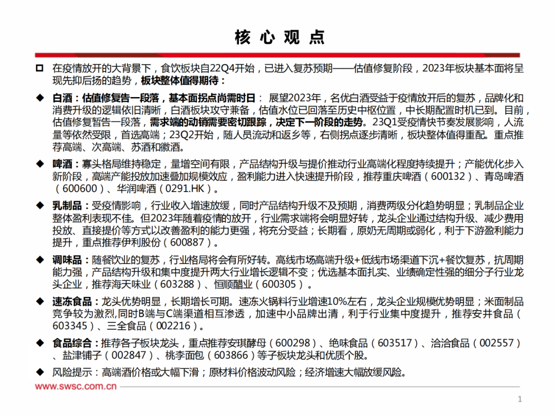 下载报告:食品饮料行业2023年投资策略:疫情放开估值修复,基本面拐点值得期待