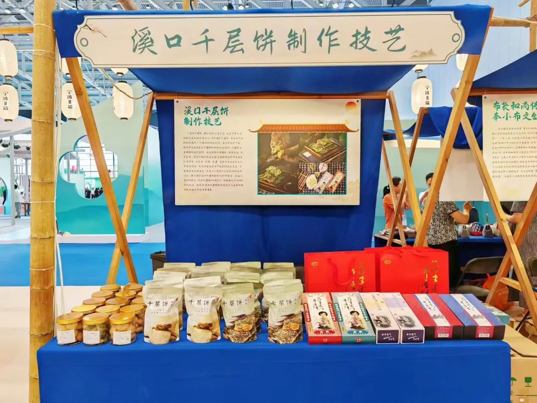 今年,由“布袋和尚传说”(奉小布文创)、“溪口千层饼制作技艺”、“奉化曲毫制作技艺”组成的奉化特色非遗参展队伍也在博览会上精彩亮相,吸引众多游客驻足观看、品尝和购买。