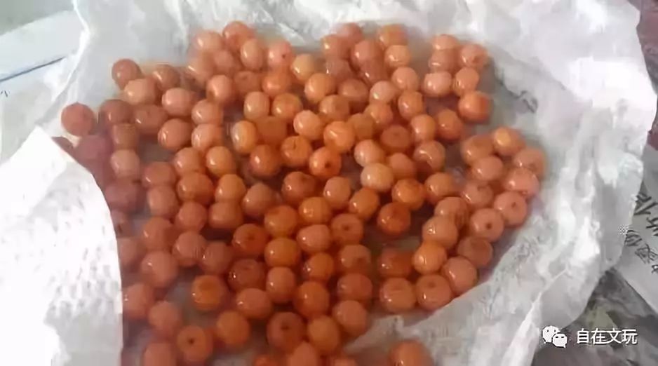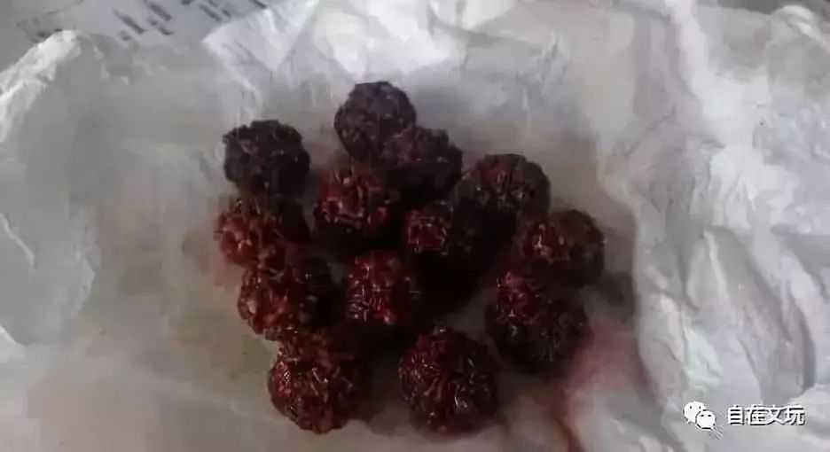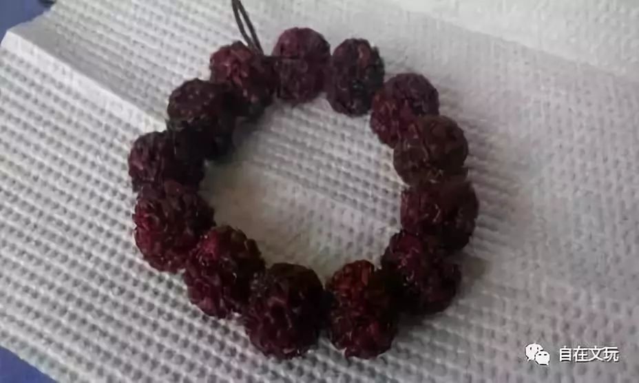 把菩提根挑选出来,阴干穿起来,经过浸泡表面带有一种奇异的光泽。