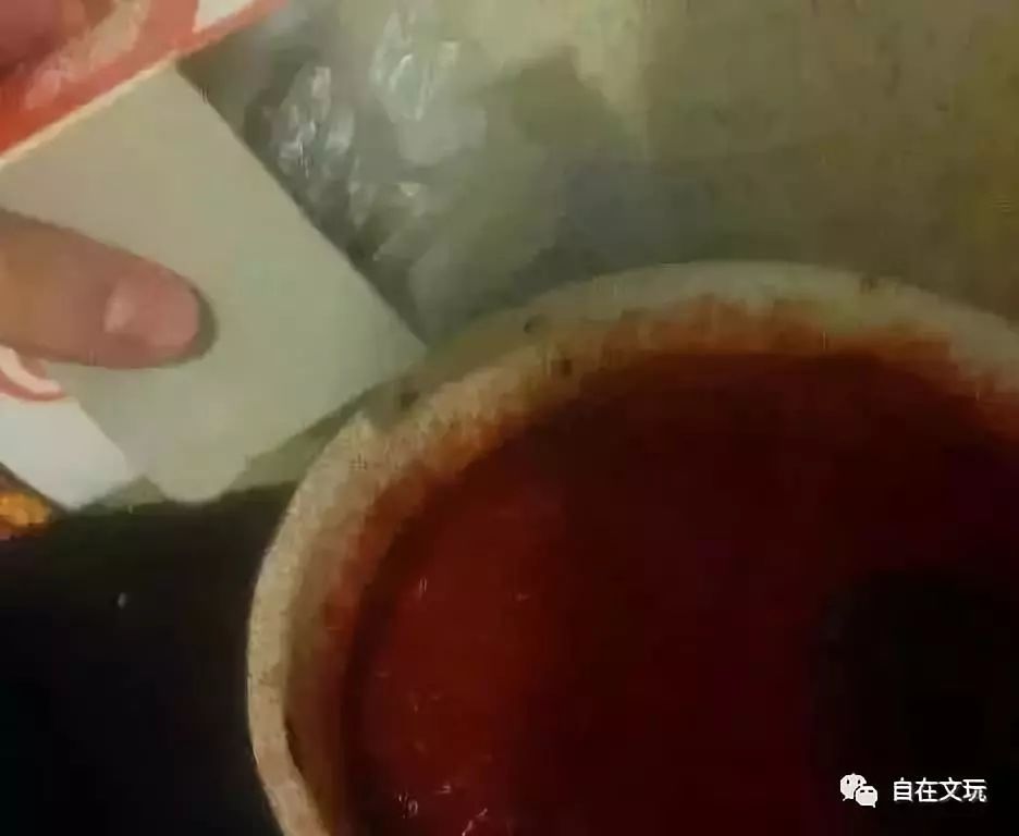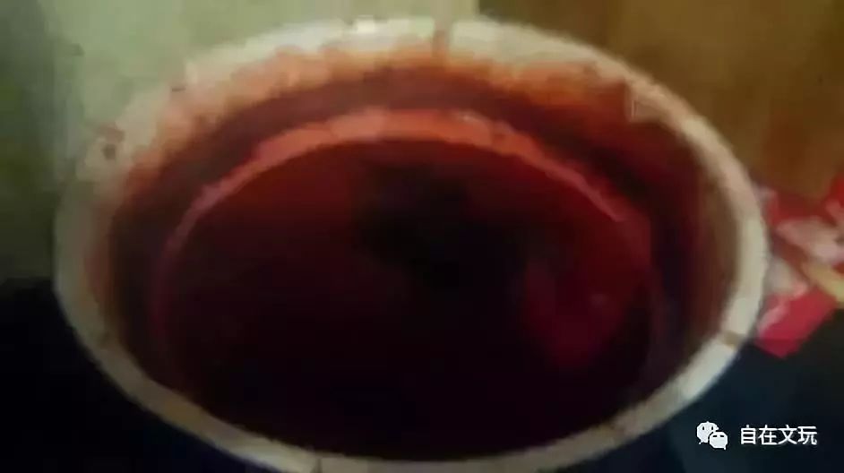 现在来看看实验,吧上次浸泡的紫檀汁中加入紫檀粉,再放入普洱茶,混合后加温水煮。