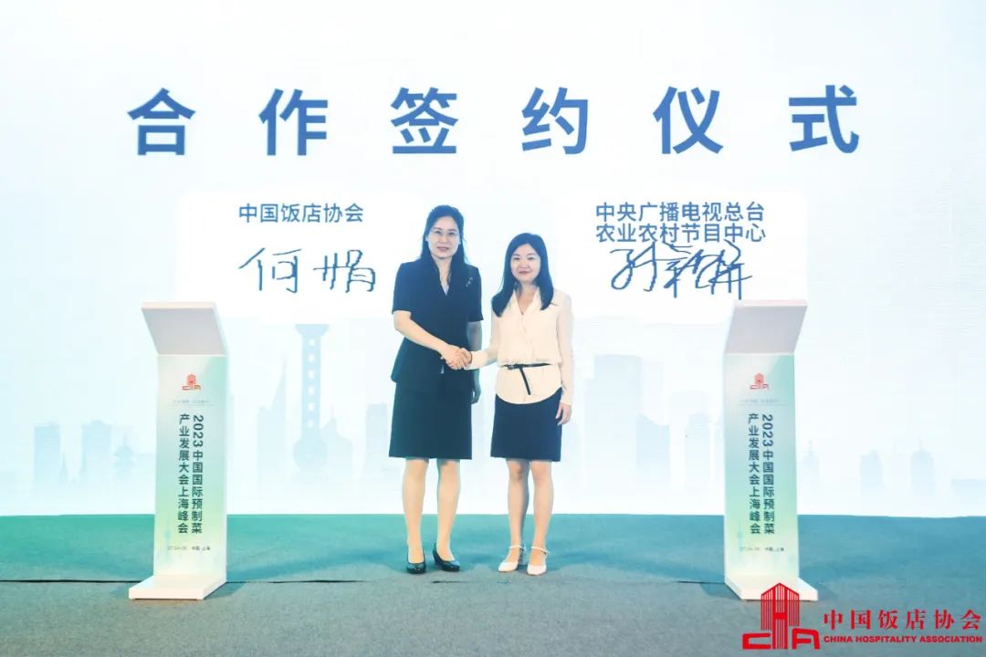 会议期间中国饭店协会还与中央广播电视总台农业农村节目中心合作签约,开启《预制菜争霸赛》现场报名通道;正式启动九成大厨线上平台启动仪式。