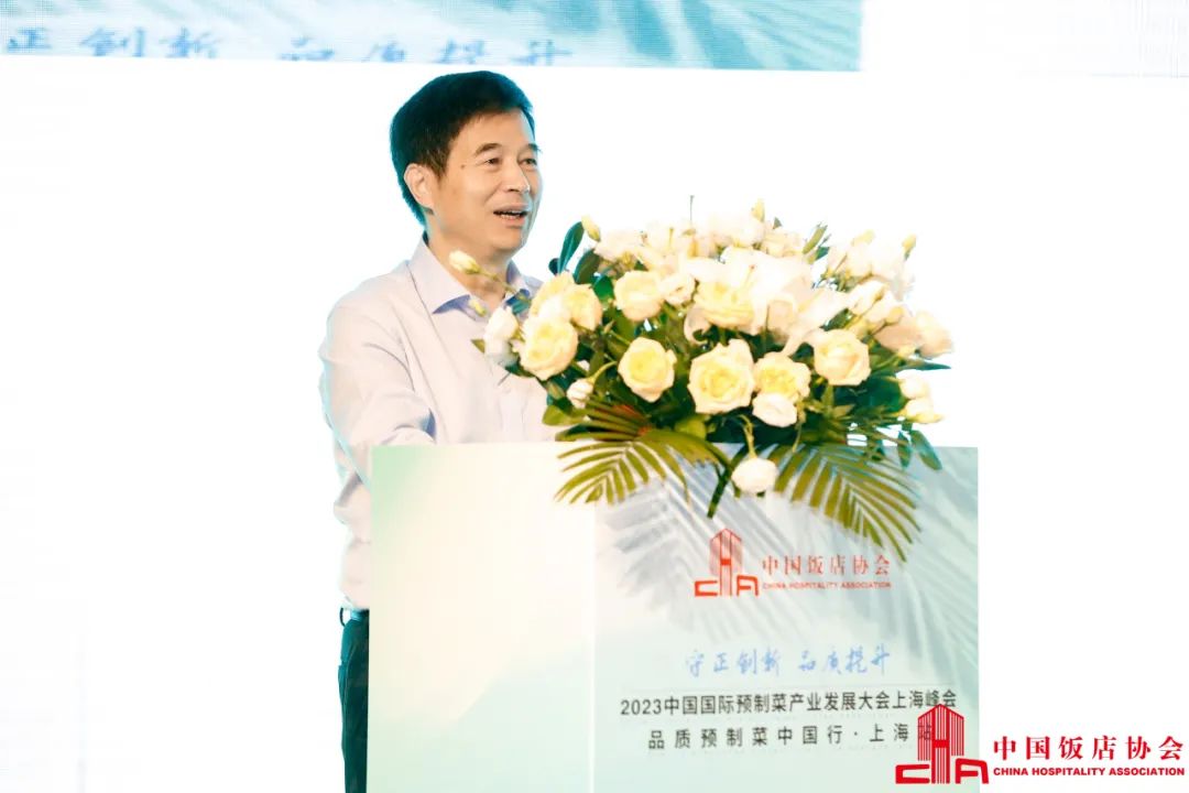 7月6日,由中国饭店协会、上海市餐饮烹饪行业协会联合主办的2023中国国际预制菜产业发展大会上海峰会暨品质预制菜中国行上海站与2023华食展(上海站)•首届中国国际预制菜博览会同期举办。活动以“守正创新、品质提升”为主题,中国饭店协会会长陈新华,陕西省商务厅副厅长郭绍敏,中国饭店协会副会长、上海市餐饮烹饪行业协会会长陈喆,中国饭店协会副会长、上海梅龙镇集团总经理熊佳俊,中国饭店协会副会长金勇,江苏省餐饮行业协会常务副会长徐浩,泉州市一站选电子商务有限公司董事长黄明祥,中国饭店协会预制菜专业委员会副理事长、正大农牧食品企业中国区食品研发中心负责人王冶,华墨集团创始人、CEO王国平,泰兴市农产品加工园区管委会主任王飞,中央广播电视总台农业农村节目中心《预制菜争霸赛》制片人孙颖屏等领导及来自全国各地预制菜、餐饮企业150余人出席活动。