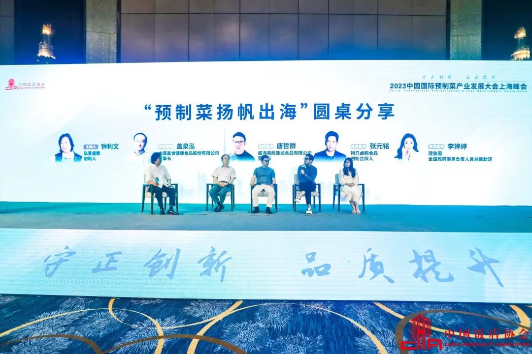 除国内市场外,预制菜出海也是近年来行业的关注热点。本次大会还以“预制菜扬帆出海”为主题设置了圆桌论坛环节,邀请弘景鼎盛创始人钟利文作为主持人、大连盖世健康食品股份有限公司董事长盖泉泓、威海美商能龙食品有限公司董事长唐哲群、广东物只卤鹅食品创始合伙人张元铭、理象国政府事务总监兼总裁助理李婷婷作为分享嘉宾进行交流碰撞。