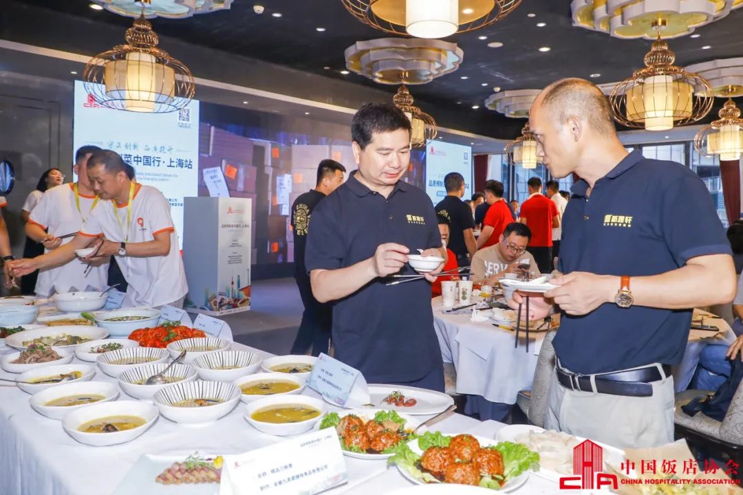 品鉴对接环节,5日下午举办了2023品质预制菜中国行上海站--品质预制菜评选&交流对接品鉴会,首期严选四川新雅轩食品有限公司、上海新雅食品有限公司、浙江浔味堂食品有限公司等8家预制菜头部领先企业上台对代表性产品进行推介,100余位采购商现场对菜品交流品尝。