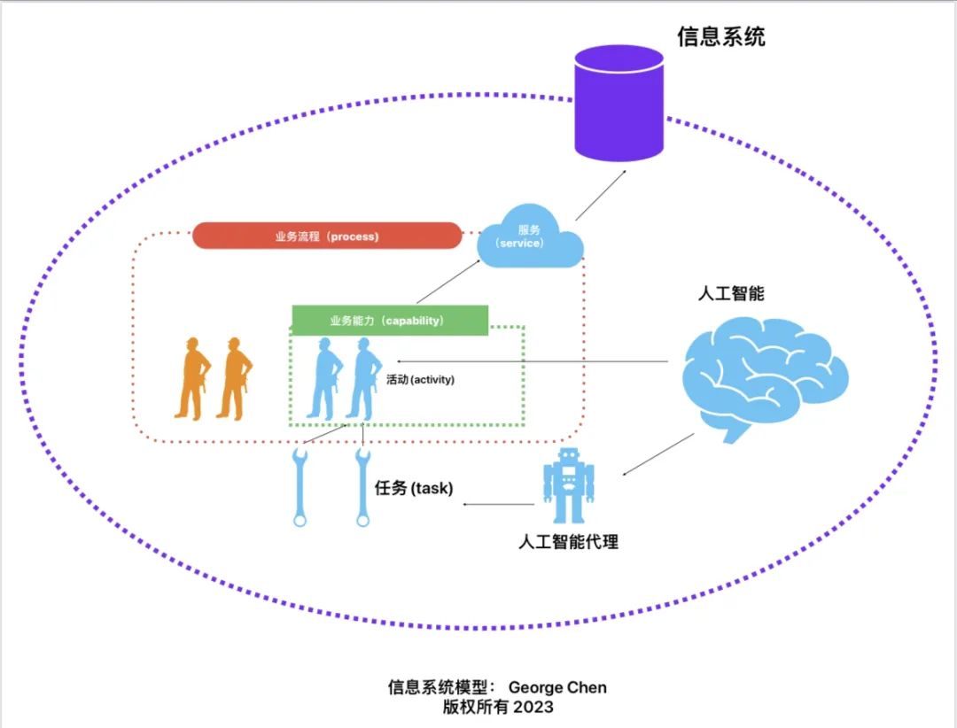 我们将企业业务活动的数字化抽象为这样一系列概念和模型:企业的业务活动(activities)是数字化的对象,活动的最小元素,即每一个动作,可以叫任务(task),而若干活动构成某个业务能力,亦即“服务”(service),数字化的服务可以用云的方式来交互,技术上采用API来访问和连接;从另一个角度上,业务流程等于一系列活动的结构化组合,流程和业务能力是不同维度描述业务,又有交叉的概念。若干个数字化服务构成信息系统,一个或若干个信息系统支持一套业务流程。