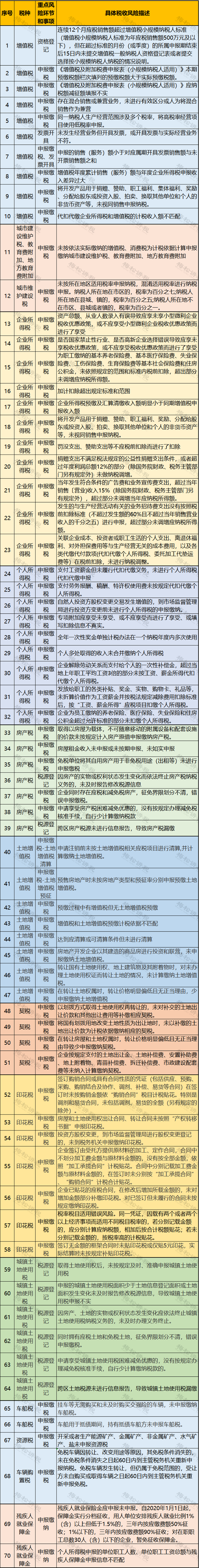 除了税负率,税务局发布了173项税务风险提示清单,大家抓紧自查!