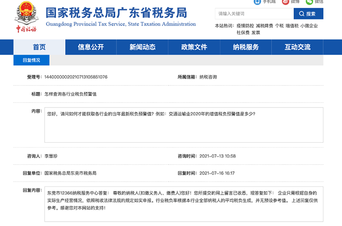 此前东莞市税务局有回复:企业只需根据自身的实际生产经营情况,依照税收法律法规的规定如实申报。行业税负率根据本行业全部纳税人的平均税负生成,并无预设参考值。