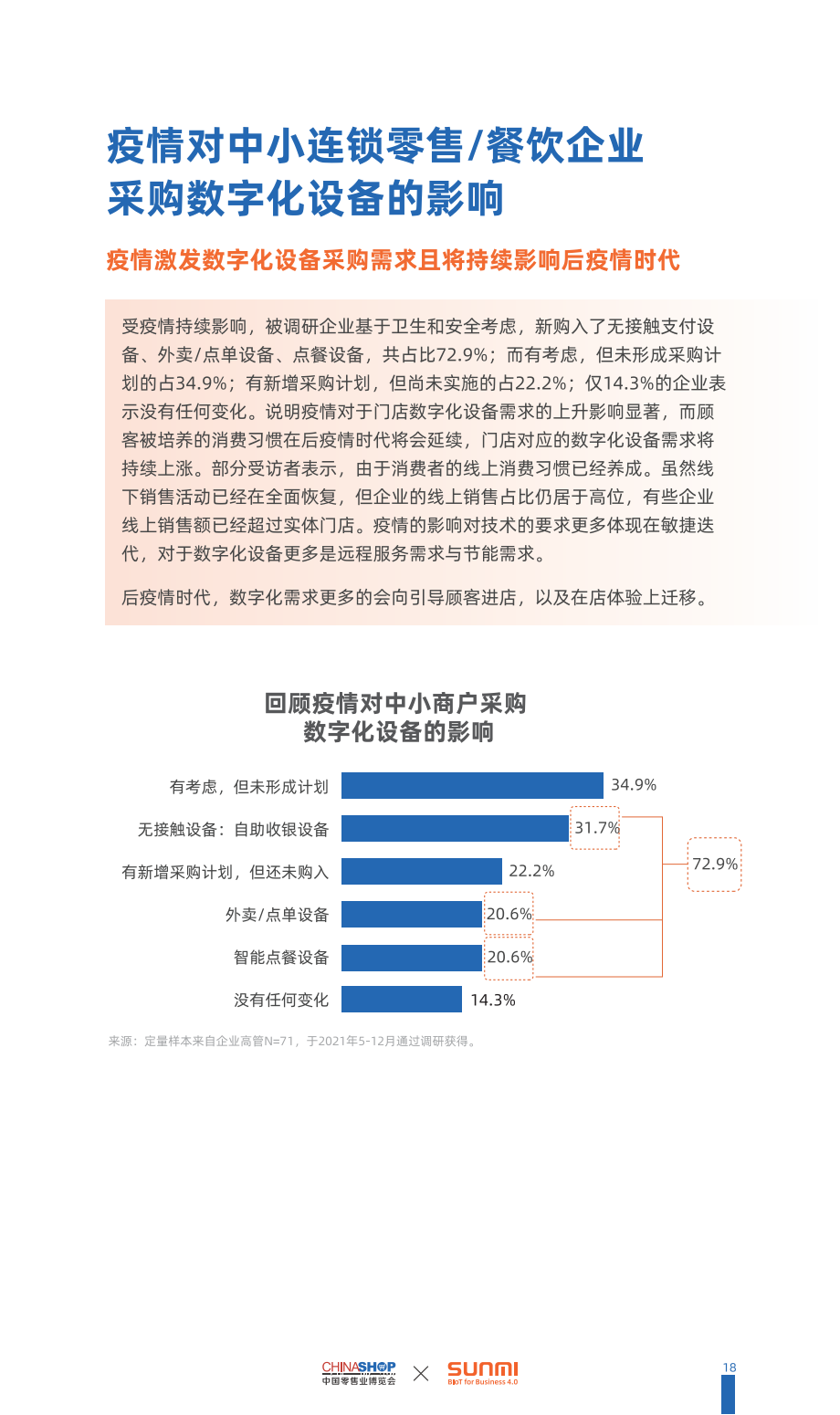 2020年至今,中国零售业/餐饮业经历了前所未有的挑战。无论是抗疫保供,还是消费者行为变化都加速了零售/餐饮企业的数字化进程。大家清楚地意识到必须通过数字化系统升级,全渠道会员运营,数字化营销以及提升供应链数字化水平等手段来提高销售,降本增效,使企业持续发展。在后疫情时代这一趋势不会发生大的变化。