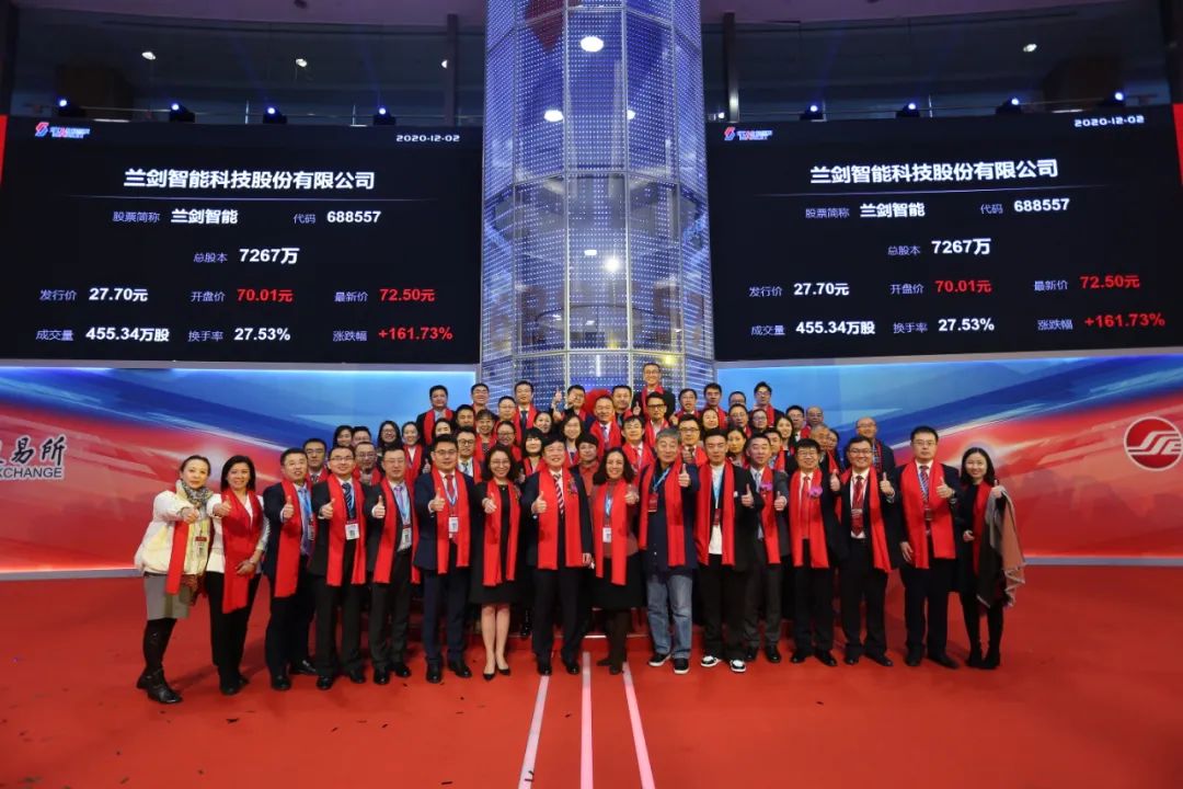 12月2日,兰剑智能(证券代码:688557.SH)在上交所科创板成功上市。本次公开发行的股票数量为1817万股,发行价格为27.7元/股。当天,正奇金融科技金融BU副总经理杨轶雯参加了上市仪式。