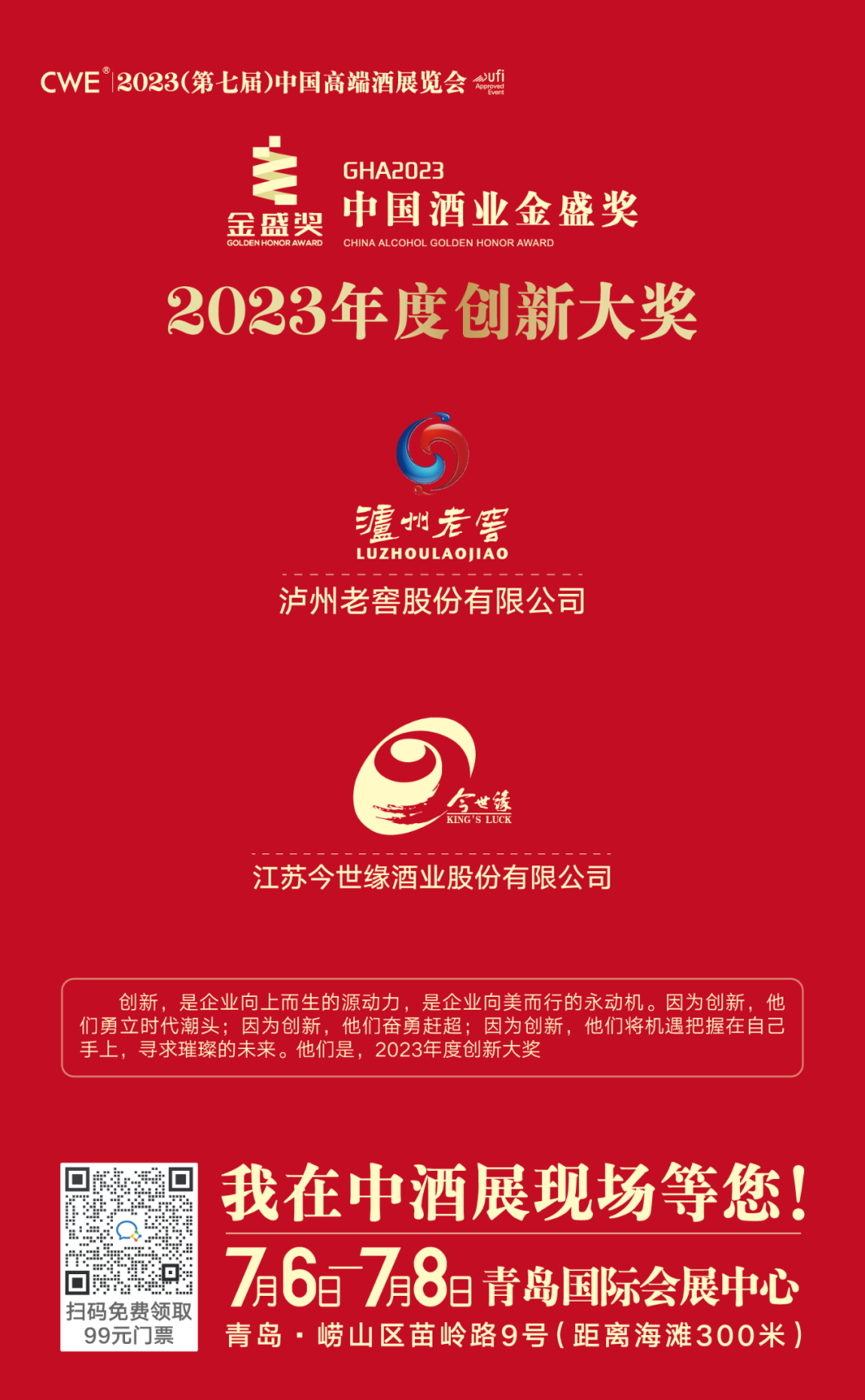 泸州老窖股份有限公司、江苏今世缘酒业股份有限公司荣获“2023年度创新大奖”。