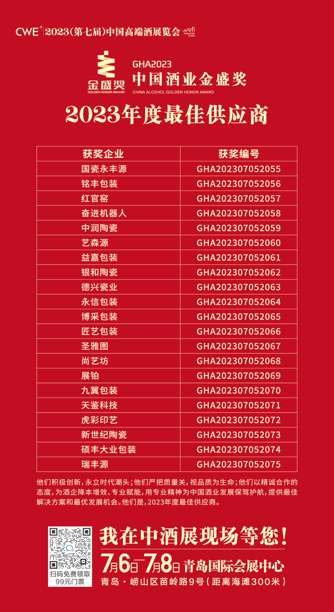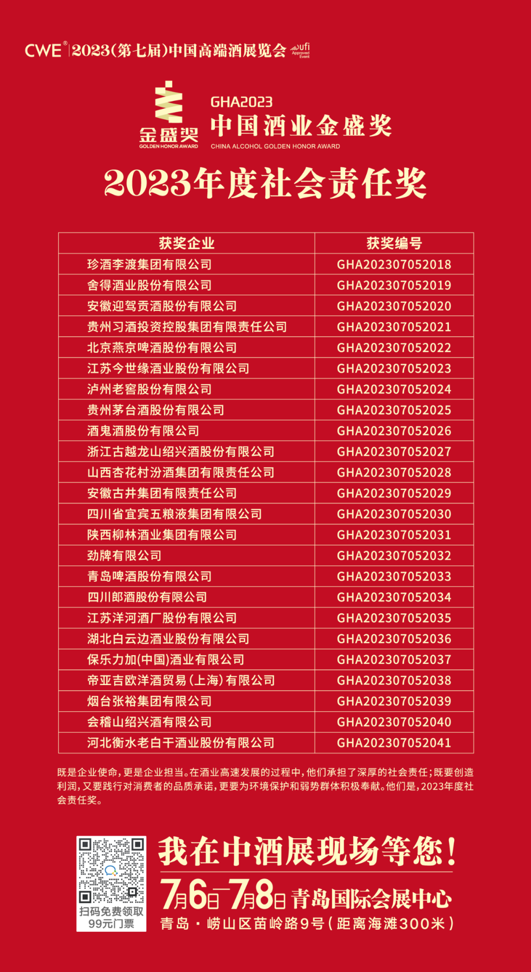 本届金盛奖,组委会开启更全局的视野,充分重视当下酒业的创新发展潜能与酒企的社会责任感。专设“2023年度创新大奖”、“2023年度社会责任奖”,旨在兼顾发展动能与社会价值。