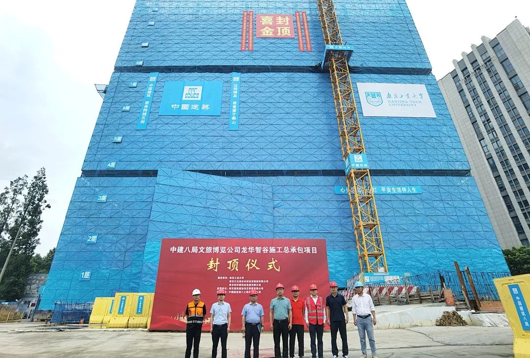 7月6日,南京江北新区龙华智谷项目南区首栋主楼结构封顶,提前4天完成既定封顶任务。南京工业大学基建处处长张志诚、副处长杜俊,江北科投集团副总经理戴晓玉、工程部副部长郝伟,龙华智谷项目南区建设单位现场负责人史晓东,文旅博览公司南京分公司副总经理韩桂圣,项目有关负责人参加封顶仪式。