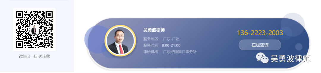 广州吴勇波律师咨询热线:13622232003, QQ:1065533727。