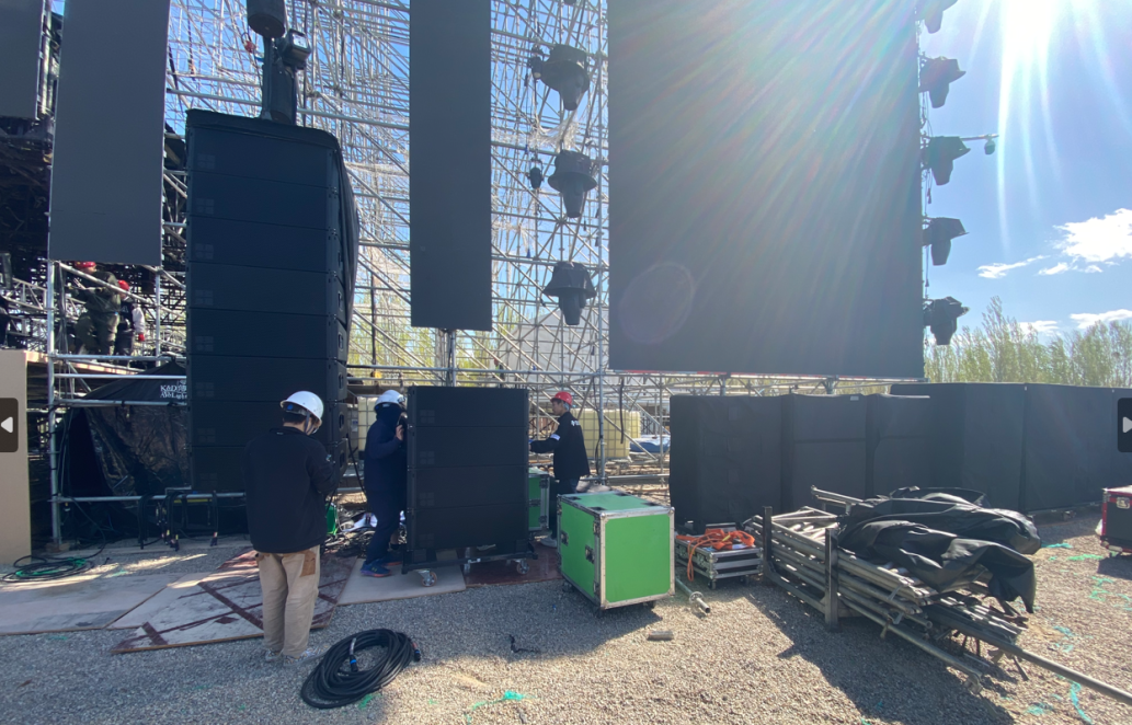 三大舞台之一的草莓舞台选用了德国d&b audiotechnik 音频设备作为扩声系统。当中由大型三分频线阵列J-系列音箱作为主扩声系统,B22-SUB作为超低频补声。J-系列音箱采用三分频结构,即使在大声压时,仍具有极高的清晰度,而出色的水平恒定指向扩散角度能够控制频率下限至250Hz,并具有高声压输出能力,可覆盖距离超过100米,使J-系列成为任何类型远场扩声的优质保障。