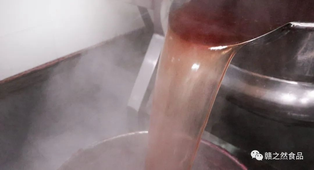 为了防止新鲜水果果肉被空气氧化,草莓果肉打浆完成后会迅速进入夹层锅内搅拌加热约三个小时。