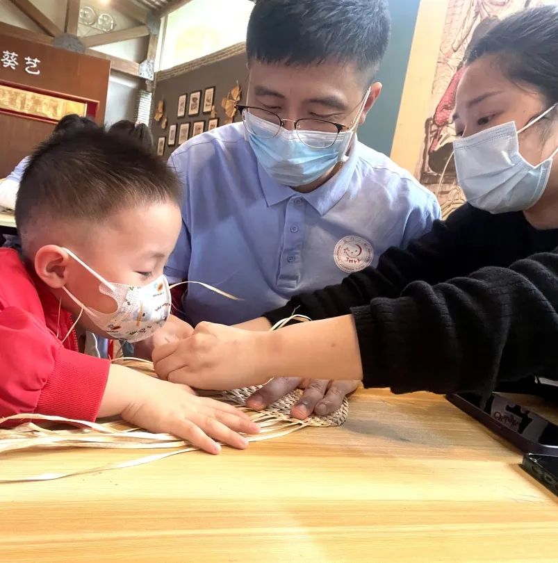 为了更好地领略侨乡葵艺的魅力,爸爸妈妈和小朋友们共同编织葵扇,进一步感受劳动人民的智慧和葵艺的奥妙。