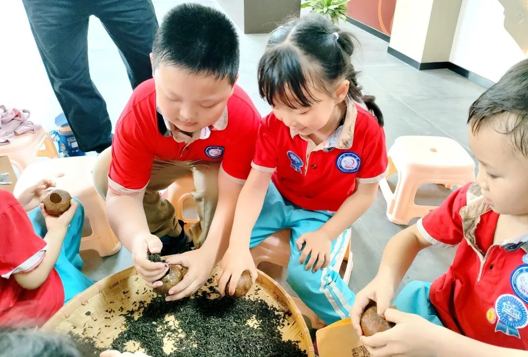 小朋友们通过触觉、听觉、视觉、味觉、嗅觉多感官深入了解陈皮,亲身体验如何制作柑普茶。瞧!小朋友们做得多认真,原来柑普茶是这样做成的啊!
