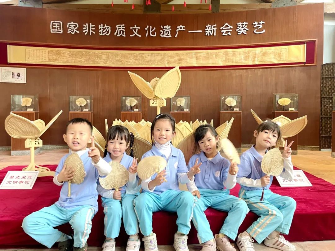 新会素有“葵乡”之美誉,葵文化历史悠久,据史书记载,新会葵树种植、葵艺加工自东晋时起已逾1600多年历史,凭借其高超的造型艺术和精湛的编织技巧新会葵艺被评为国家级非物质文化遗产,成为了新会人民的骄傲。跟随讲解员的脚步,中七班的小朋友走进葵博园,在园内寻找有关葵艺发展历程、葵艺制作技艺的信息,开启一场葵林“寻宝”之旅。