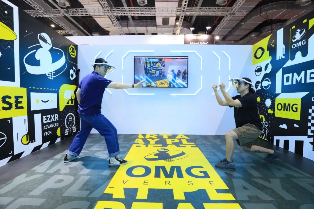 此次慕尼黑上海光博会中,舜为提供了多种XR产品的使用体验。本次动态展出了透视VR一体机,全彩双目AR智能眼镜,分体式AR解决方案,Birdbath光学模组以及双目全彩波导模组(衍射波导+小型化DLP光引擎)。透视VR一体机为此次展会的热门展品,它所支持的VST(Video-see-through)功能吸引了众多观众前来体验和交流,获得了广泛好评。舜为联合易现特别打造了OMG VERSE线下游戏体验空间,展示了舜为在XR领域的深厚光学积淀与易现在AR软件和算法端以及AR-Glasses平台的核心优势。