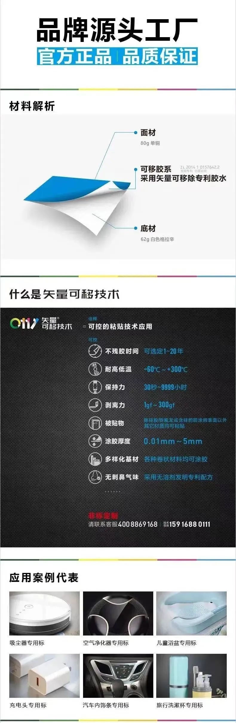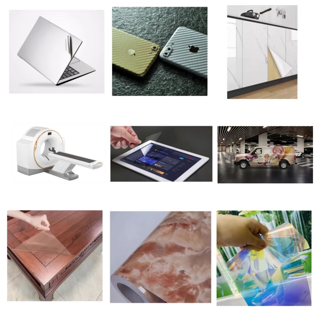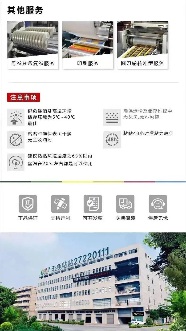 比如可移除保护膜包装在电子产品、家具、机械设备、汽车零部件等外部,起着防尘保护的作用;可移除装饰膜包装在高档包装盒、袋、瓶等上,赋予产品独特的外观,增加品牌识别度……这些都有使用前撕下的需求,因为我们所有的胶黏材料都用了可移无痕胶,让这一切变为可能——能在不同材质上轻松撕贴,不会留下难缠的胶印。