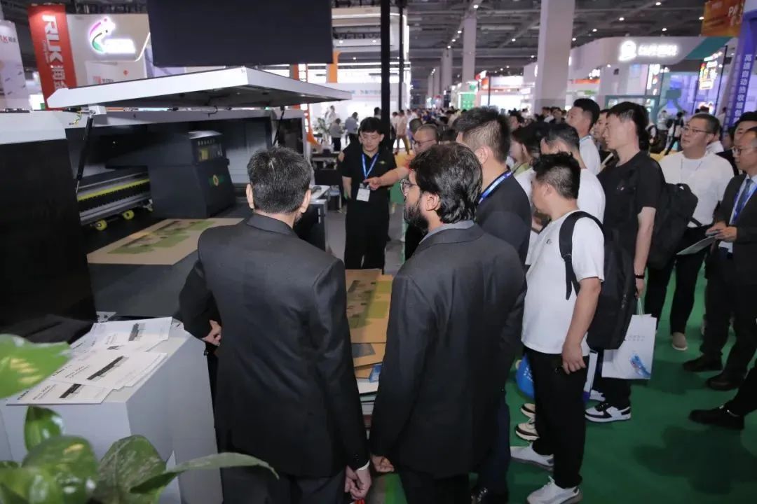 2023WEPACK世界包装工业博览会展会现场,亿恒公司展示了搭载国产锐发喷头的瓦楞纸单程喷墨打印机。该机搭载了40只苏州锐发SUREjet W160喷头,持续高速打印不拉丝,大色块高速打印吧断墨。该机的最高打印速度可达每分钟150米,打印分辨率1200x560dpi。