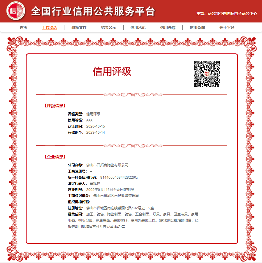开拓者企业始创于2009年,是一家集科研、生产、销售为一体的建陶知名企业。企业旗下有三大销售分公司八大强势品牌,经过多年的稳健发展,开拓者企业相继通过“国家3C强制性认证”“ISO14001:2015环境管理体系认证”“IS09001:2015质量管理体系认证”、“欧盟CE产品认证”、“知识产权管理体系认证”、“GIC国际标准健康证认证”“中国工程建设重点推广应用产品”等资质认证,并先后获得“重质量品牌企业”、“重合同守信用企业”、“质量服务信誉AAA级企业”、“全国工程建材首选企业100家”等荣誉,凭借着自身的综合实力,成为中国建筑陶瓷行业重点骨干企业之一。