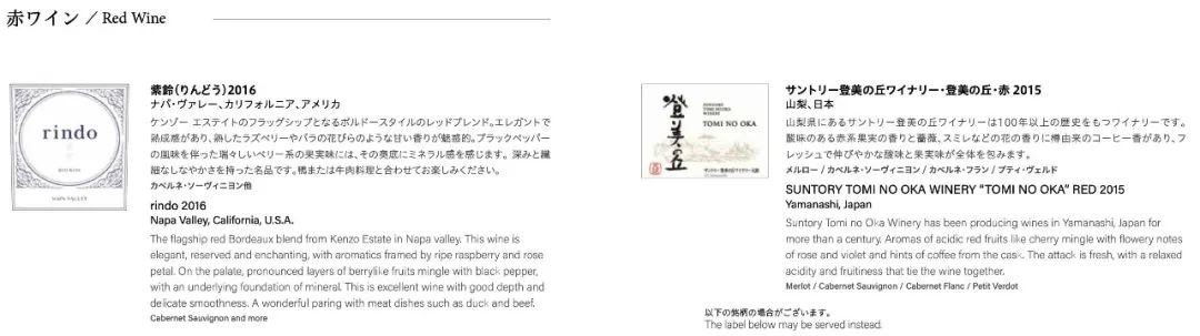 著名漫画《神之水滴》同款,多次出现,书中誉为“不敢相信是日本酿造的葡萄酒”使用了三得利旗下法国波尔多酒庄同款法国橡木桶,有明显的橡木桶、丁香、香草、皮革、黑车厘子、黑加仑和蓝莓的香气。酒体较为强壮,是典型的法国波尔多风格红葡萄酒,有非常好的陈年潜力。