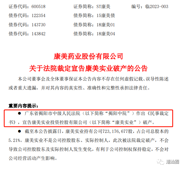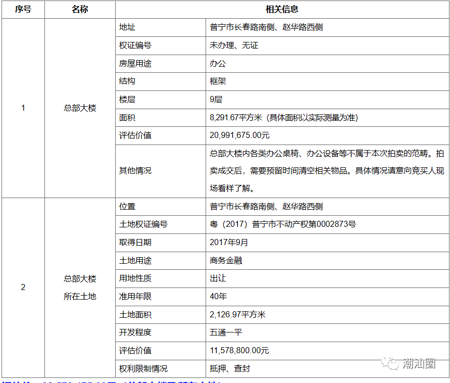 康美实业投资控股有限公司名下康美实业总部大楼及总部大楼所在土地信息如下:今年4月7日,ST康美公告,广东省揭阳市中级人民法院作出《民事裁定书》,宣告康美实业投资控股有限公司破产。2022年9月17日,ST康美披露了《康美药业关于康美实业被法院裁定受理破产清算并指定管理人的公告》(公告编号:临2022-055),揭阳中院受理普宁市建筑材料检测中心对康美实业提出的破产清算申请,并指定北京市金杜(深圳)律师事务所担任康美实业管理人。公告披露,揭阳中院认为:康美实业不能清偿到期债务,且资产不足以清偿全部债务,管理人申请宣告康美实业破产符合法律规定。本裁定自即日起生效。除了已经破产的康美实业,7月11日,ST康美发布公告,表示公司于7月10日接到通知,公司下属全资子公司康美中药城(普宁)有限公司收到广东省揭阳市中级人民法院的(2023)粤52破申5号《通知书》,深圳中科恒实业有限公司以普宁中药城无法清偿到期债务为由,向法院提出破产清算申请。关注鮀浦微帮:入鮀浦微信群
