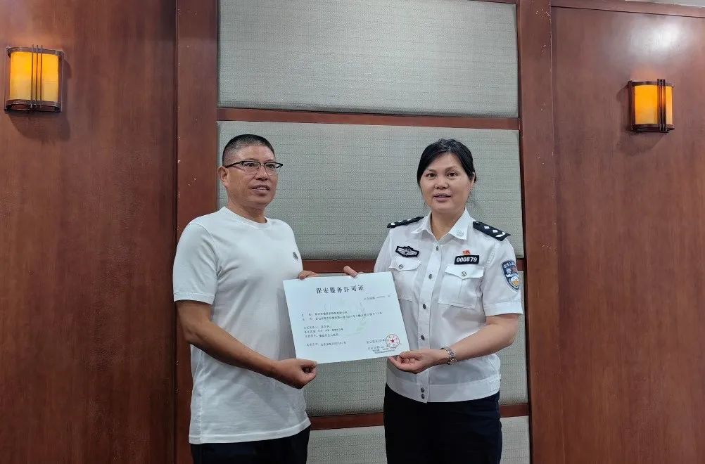 为进一步规范和提升新设立保安服务企业负责人的政治思想素质、职业道德观念和遵纪守法意识,7月11日,省政务服务中心举行颁证仪式,为新设立的保安服务企业发放《保安服务许可证》。省政务服务中心公安厅首席代表、厅二级警务专员熊意,厅治安总队、法制总队和省保安协会相关同志参会。
