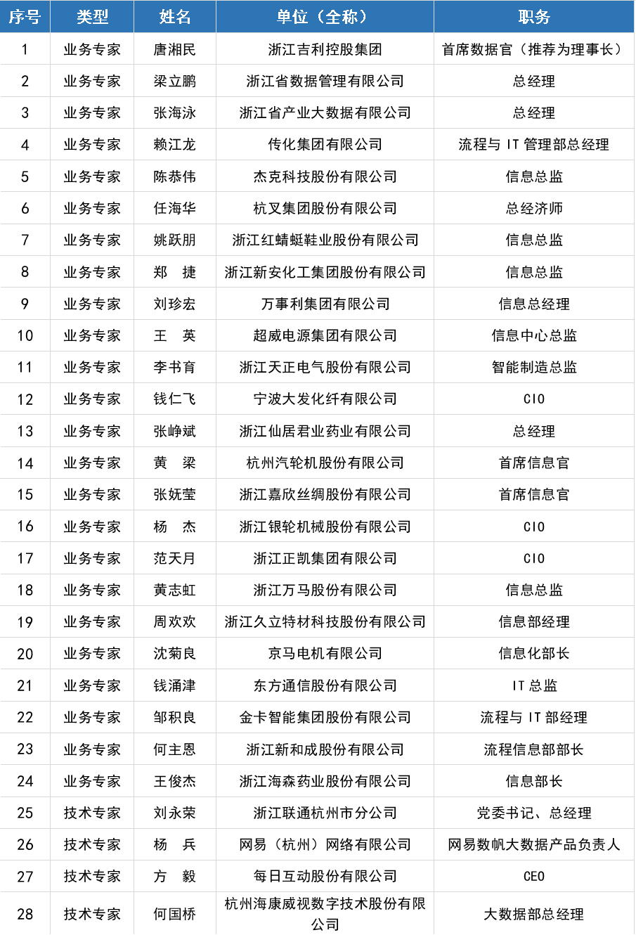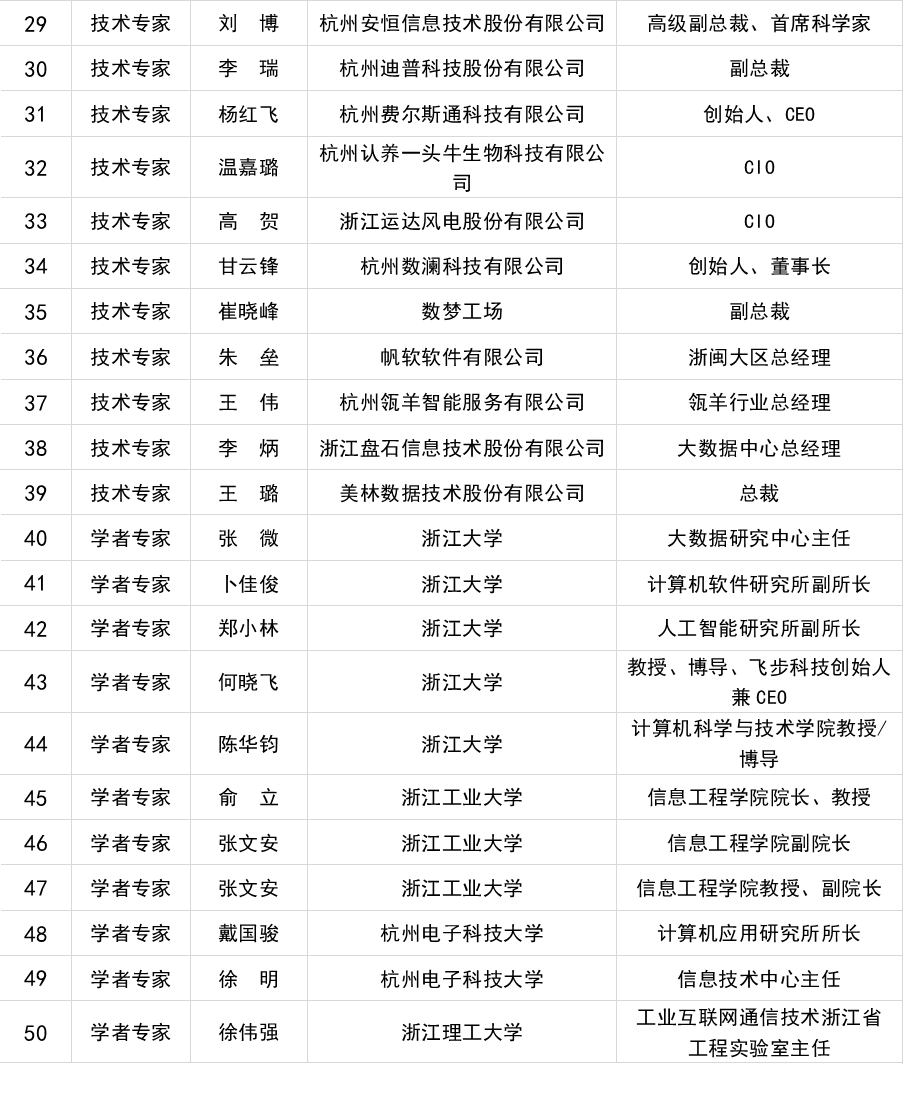 浙江省企业首席数据官联盟发起人名单