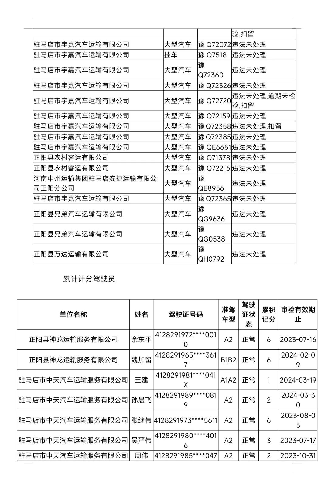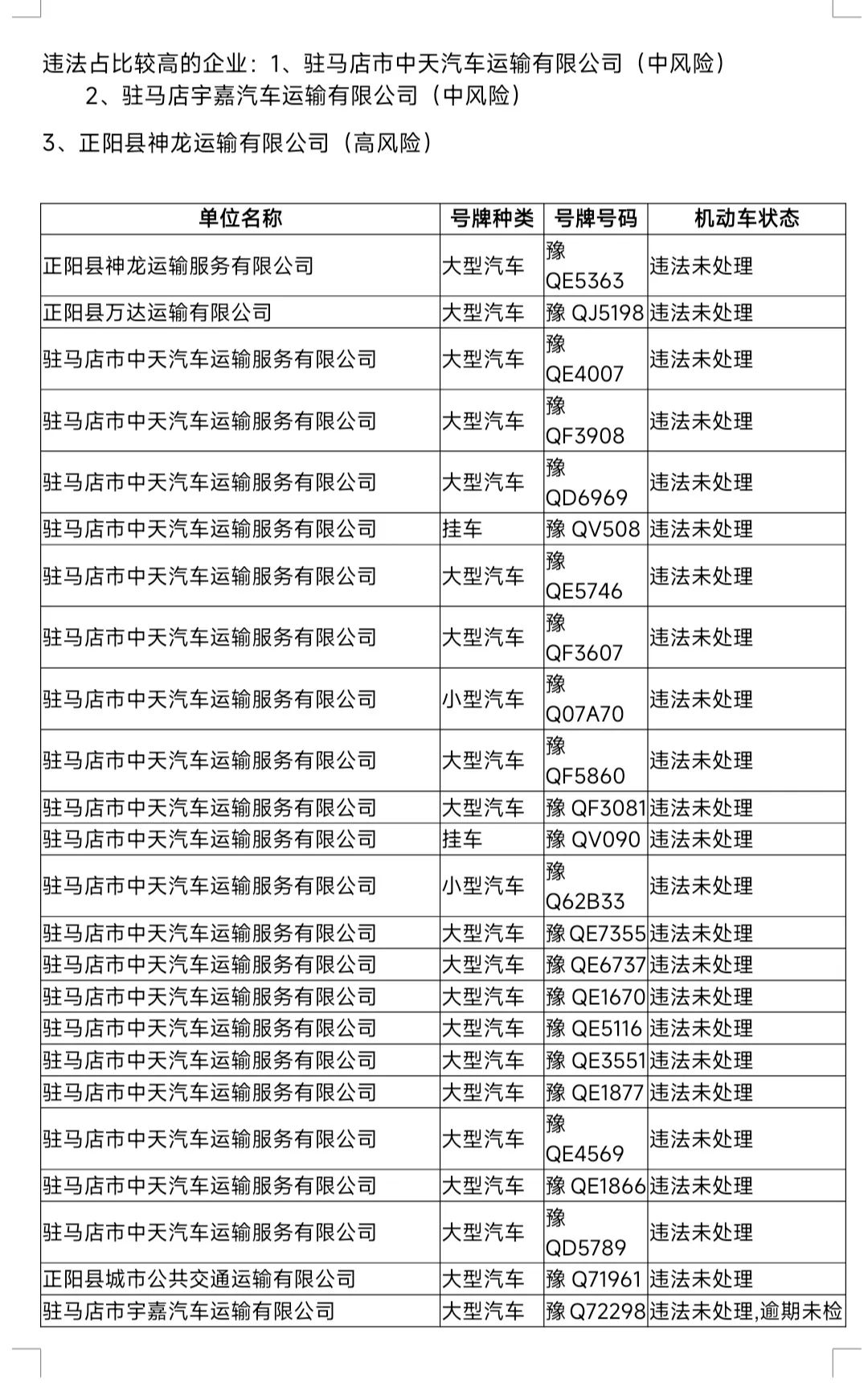 请上述交通安全高风险运输企业,车辆、驾驶人,认真做好隐患整改工作,严格落实企业及个人安全主体责任,加强对从业人员安全管理教育,夯实源头管理基础,确保道路交通运输安全。