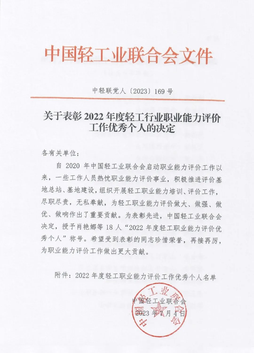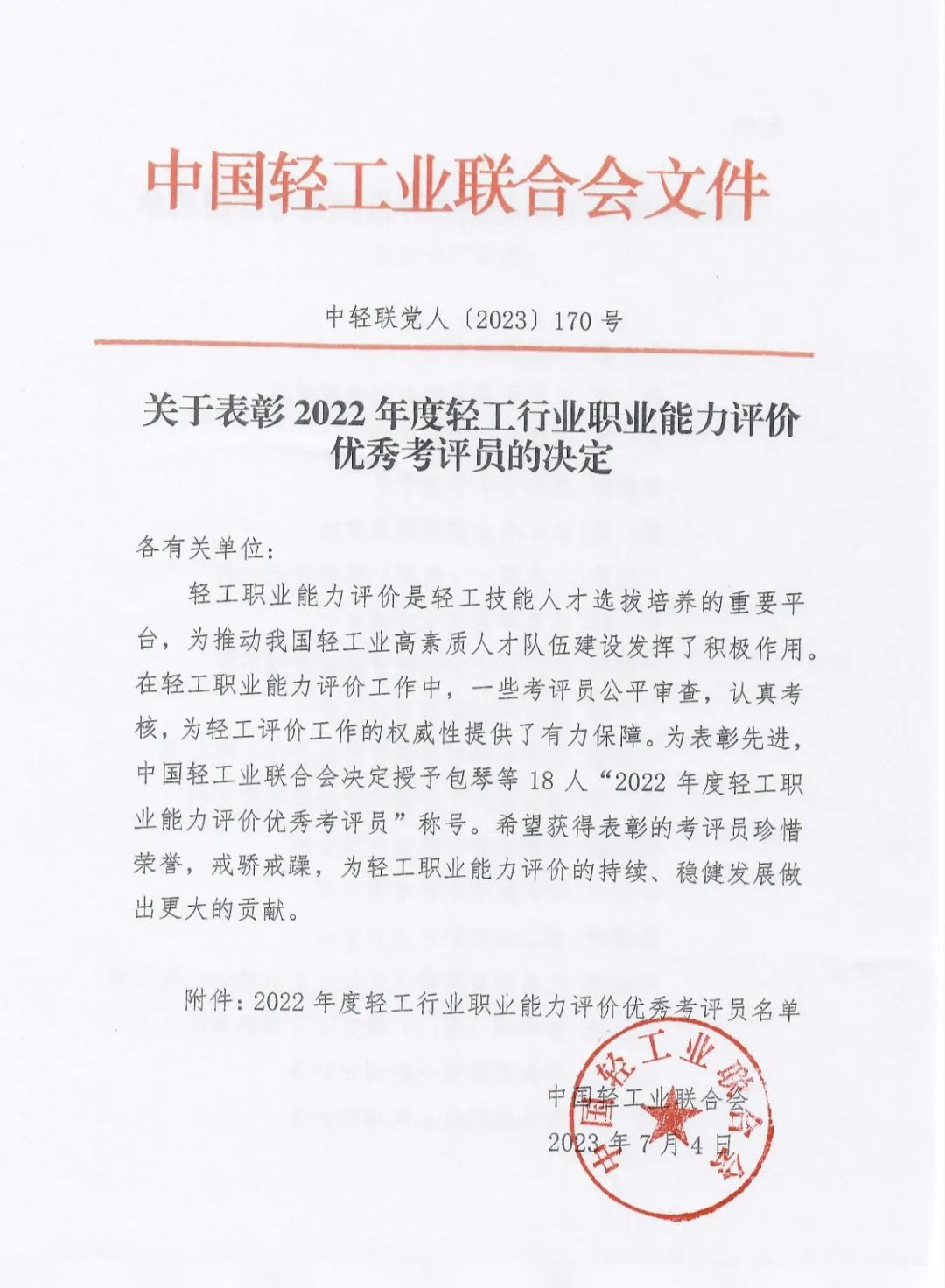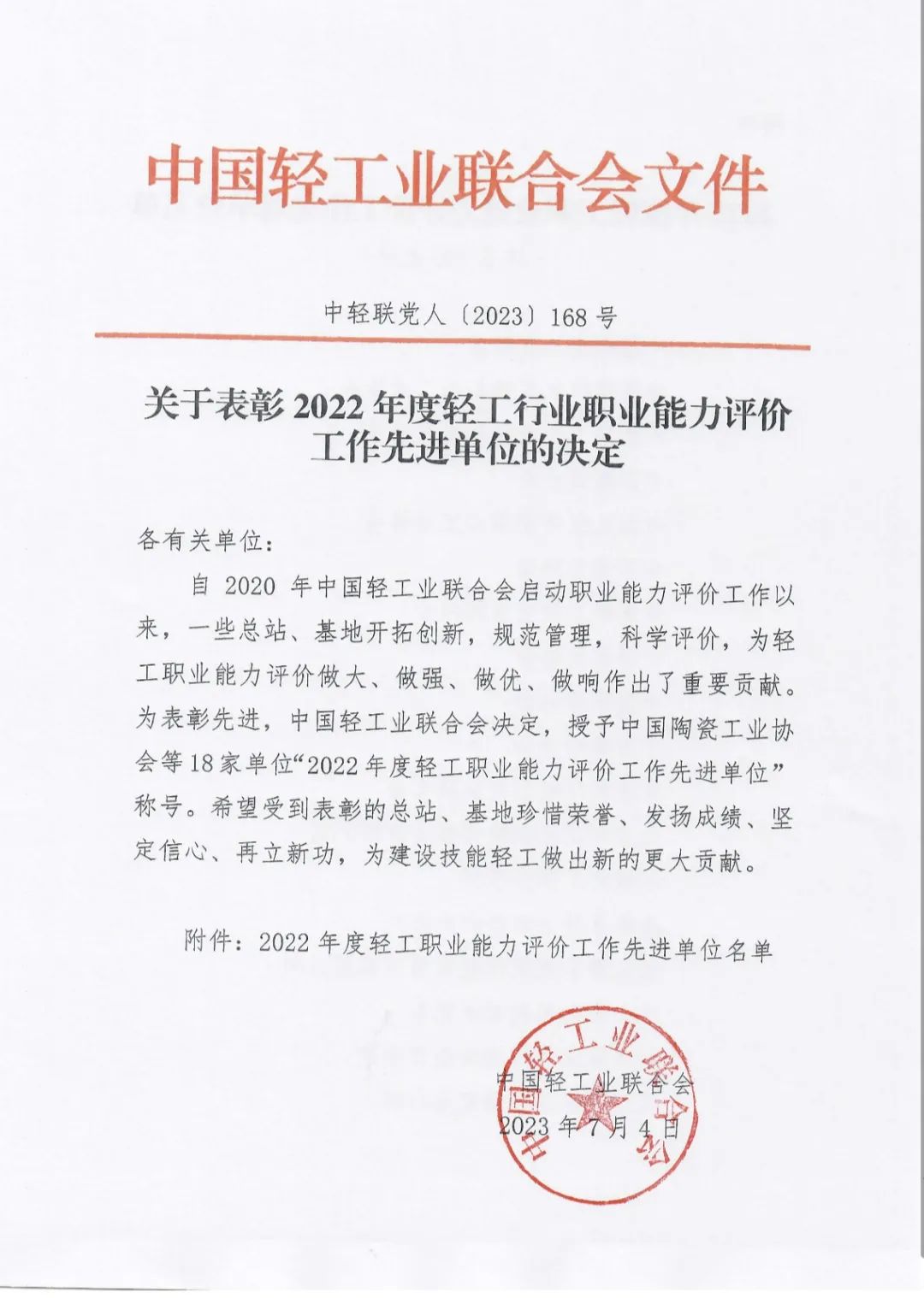 会上对在轻工评价工作中取得优异成绩和做出突出贡献的单位与人员进行了表彰。