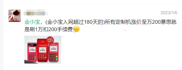 ①、金小宝,金中宝,金大宝,金付通入网180天以上:2.0%+3(即刷一万扣手续费203元);