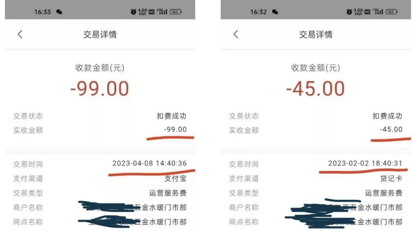 ⑳、拉卡拉流量年费:2月份刚扣过45元流量费,4月8号就再扣一笔号称99元的服务费,短短两个月时间被平白多扣去144。