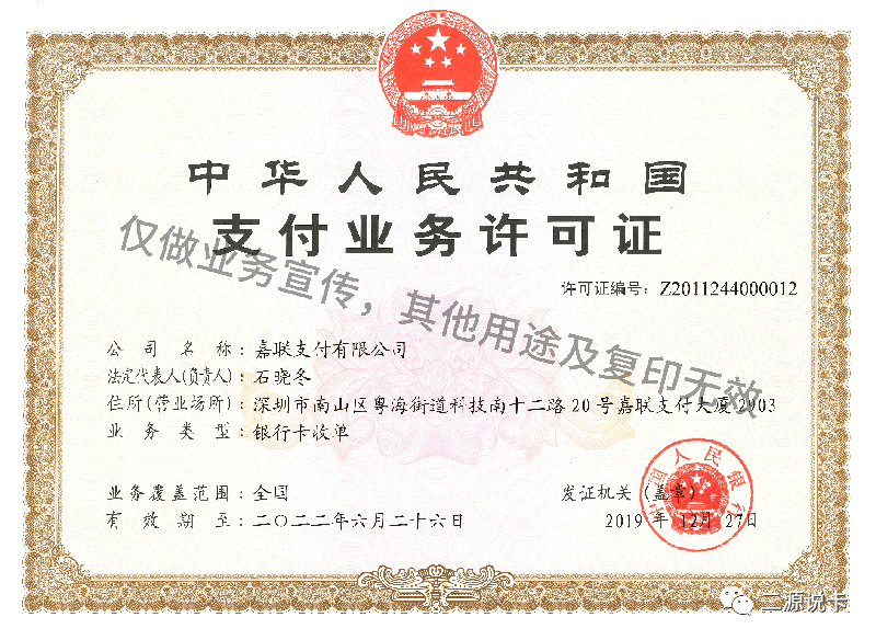 嘉联支付有限公司成立于2009年6月,是由新国都股份有限公司(股票代码:300130)全资控股的一家专门提供银行卡收单综合支付服务的第三方支付机构。嘉联支付有人民银行颁发的全国范围《支付业务许可证》(Z2011244000012),与中国银联、中国邮政等多家大型企业集团建立了长期战略合作关系。自公司成立以来,嘉联立刷秉承诚信经营、热忱服务、持续创新、不断超越的核心价值观,以传承小微价值,创新普惠金融为使命,致力成为中国领先的专业化小微金融服务企业。