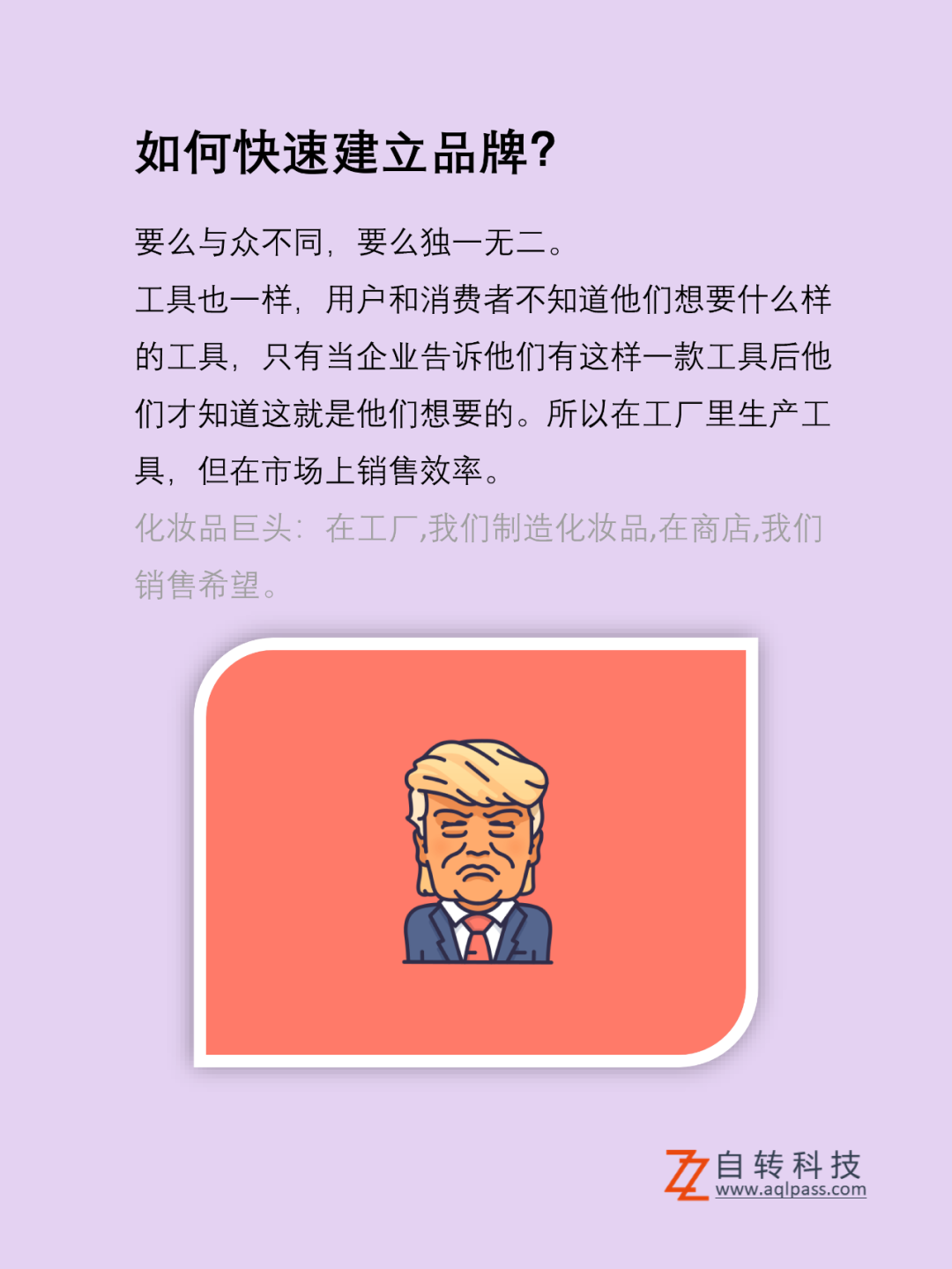 所以对于做品牌,中国企业做得太多,见得太多,但是为什么却没有我们自己的品牌?不是做品牌有多难或多深奥,而是我们自己的认知和选择。在我们的认知里,做品牌很难。那做品牌的企业是不是也会想,做代工很难?真相其实是选择。还有一些企业从成立那天起,就只是想把产品做出来,能卖出去,去参加展会了也就想着能接到订单,从来没有思考什么品牌不品牌。但是商业是有周期的,代工也是。我们为全世界干活几十年了,是时候为自己干事了。代工不但接近尾声了,低端的活连国家也不想干了,都在朝着高科技、高端制造、高铁、新能源发展。所以企业也必须朝着高质量,高附加值方向走,而做品牌是最显而易见的方向,也是维系企业持久和持续的力量。但做品牌必须跳出自我设限。