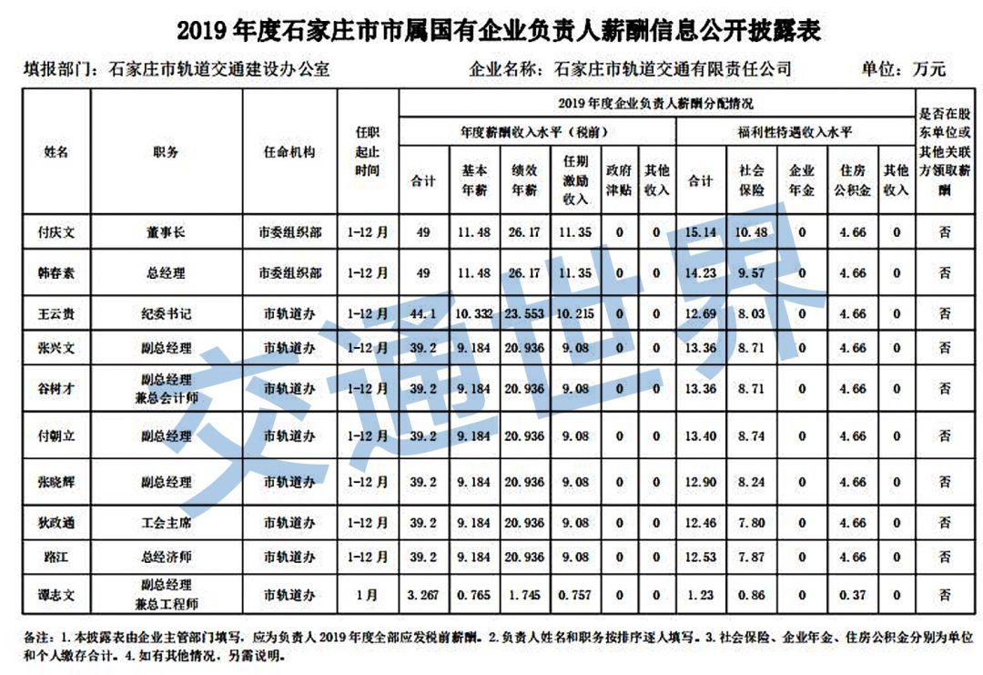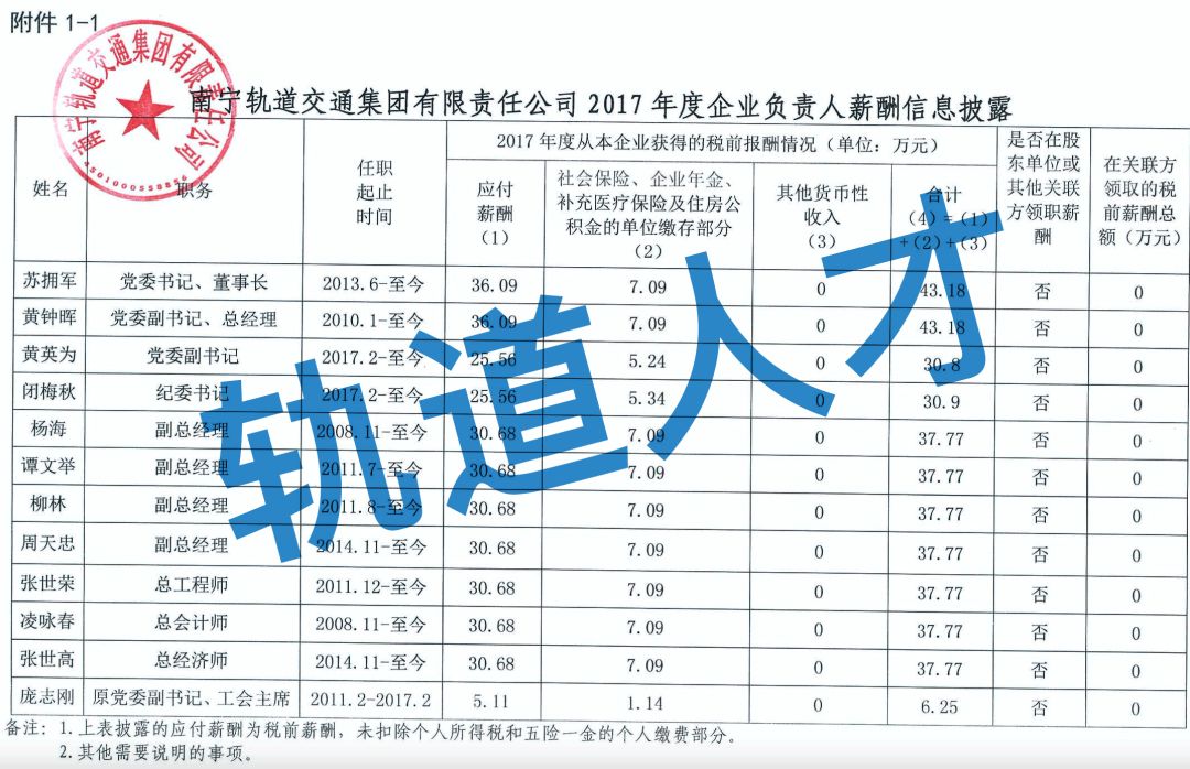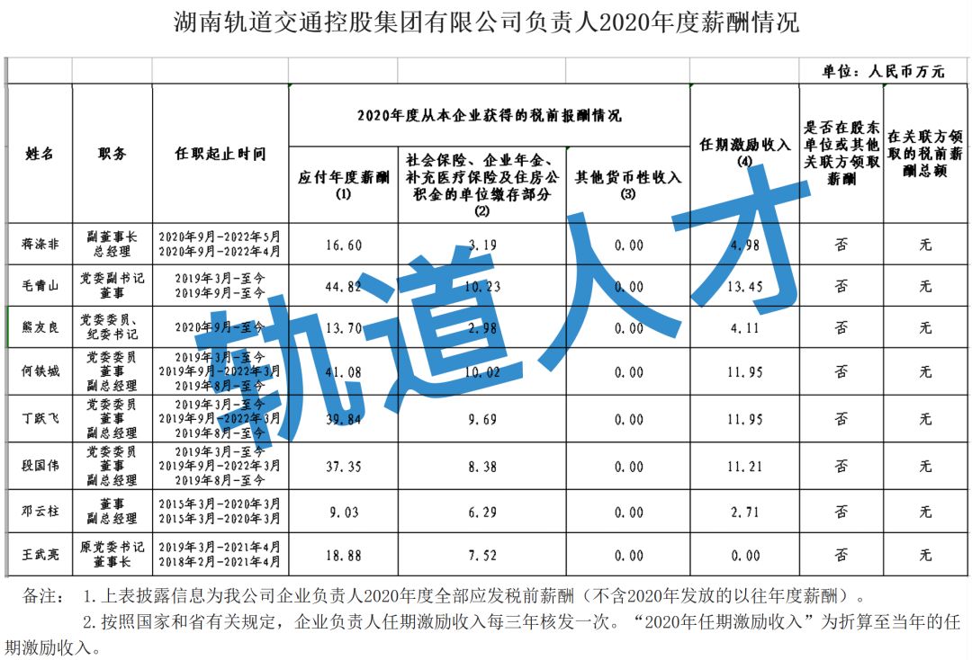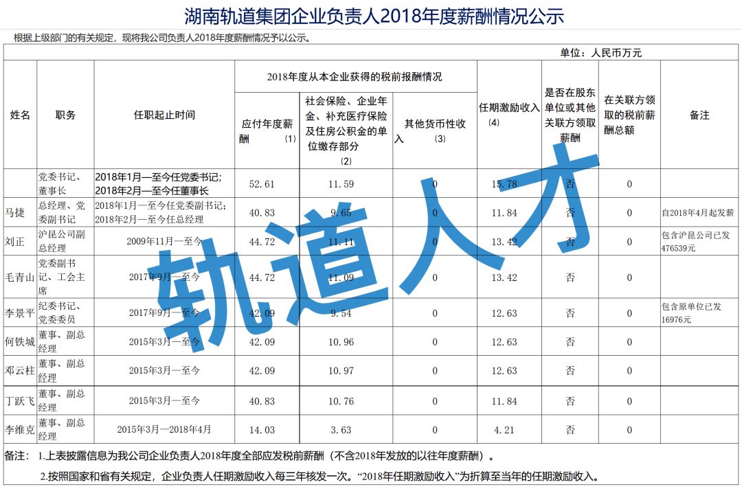 湖南轨道集团企业负责人2018年度薪酬情况公示