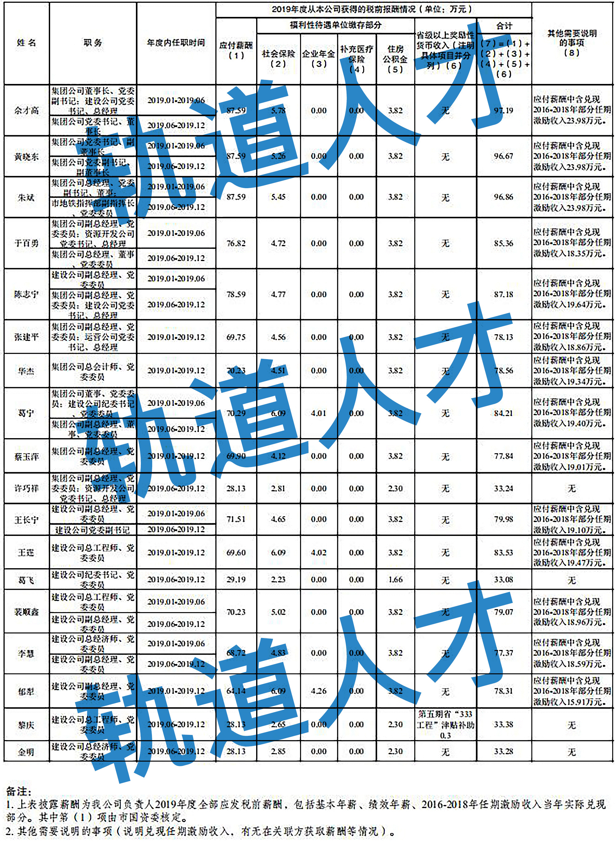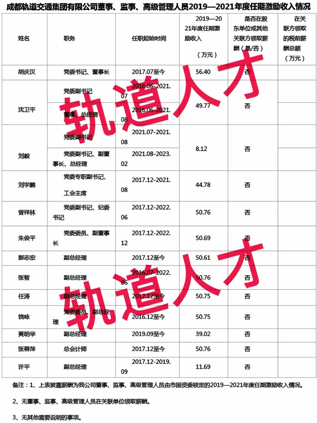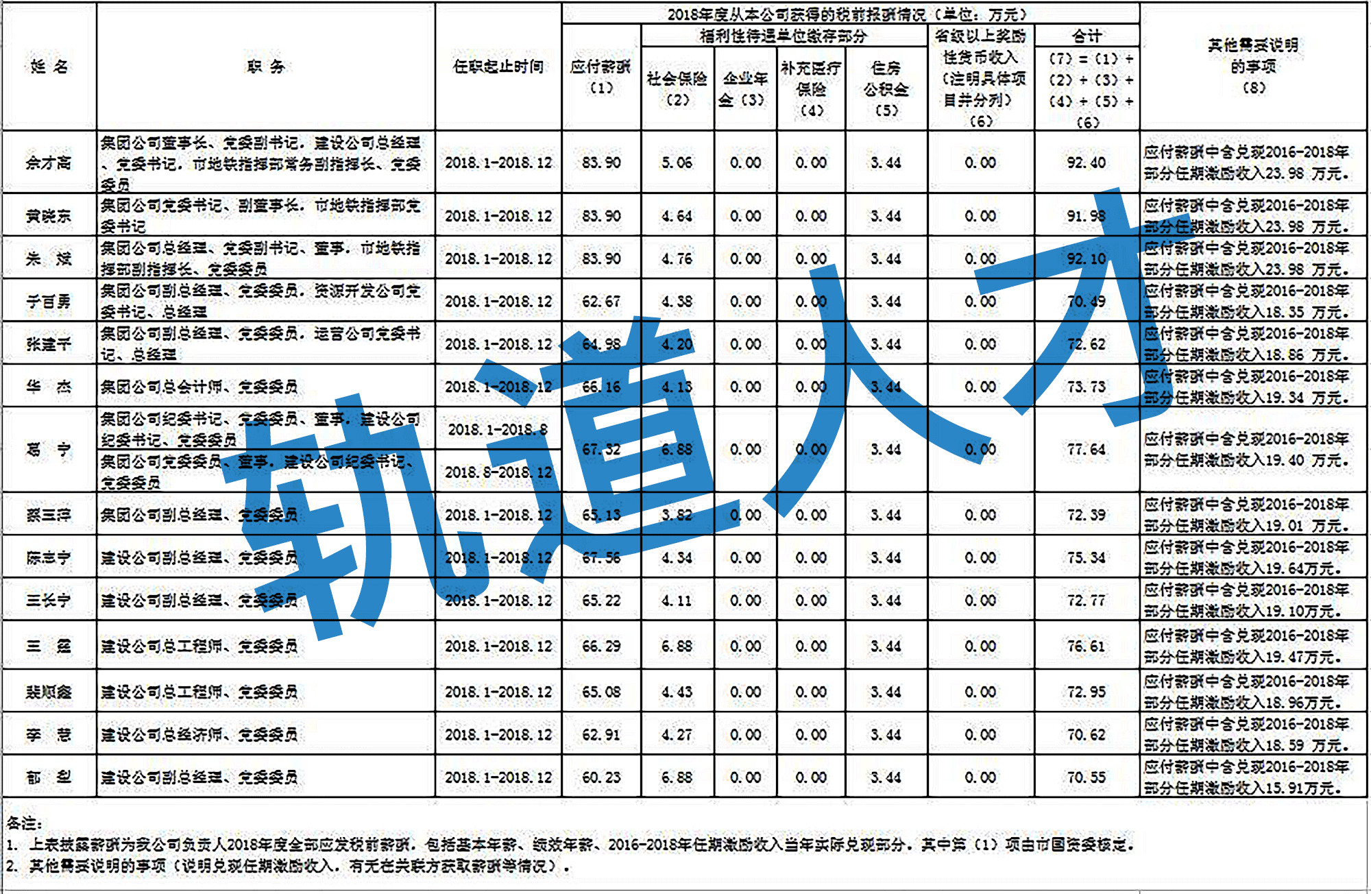 湖南轨道集团企业负责人2018年度薪酬情况公示