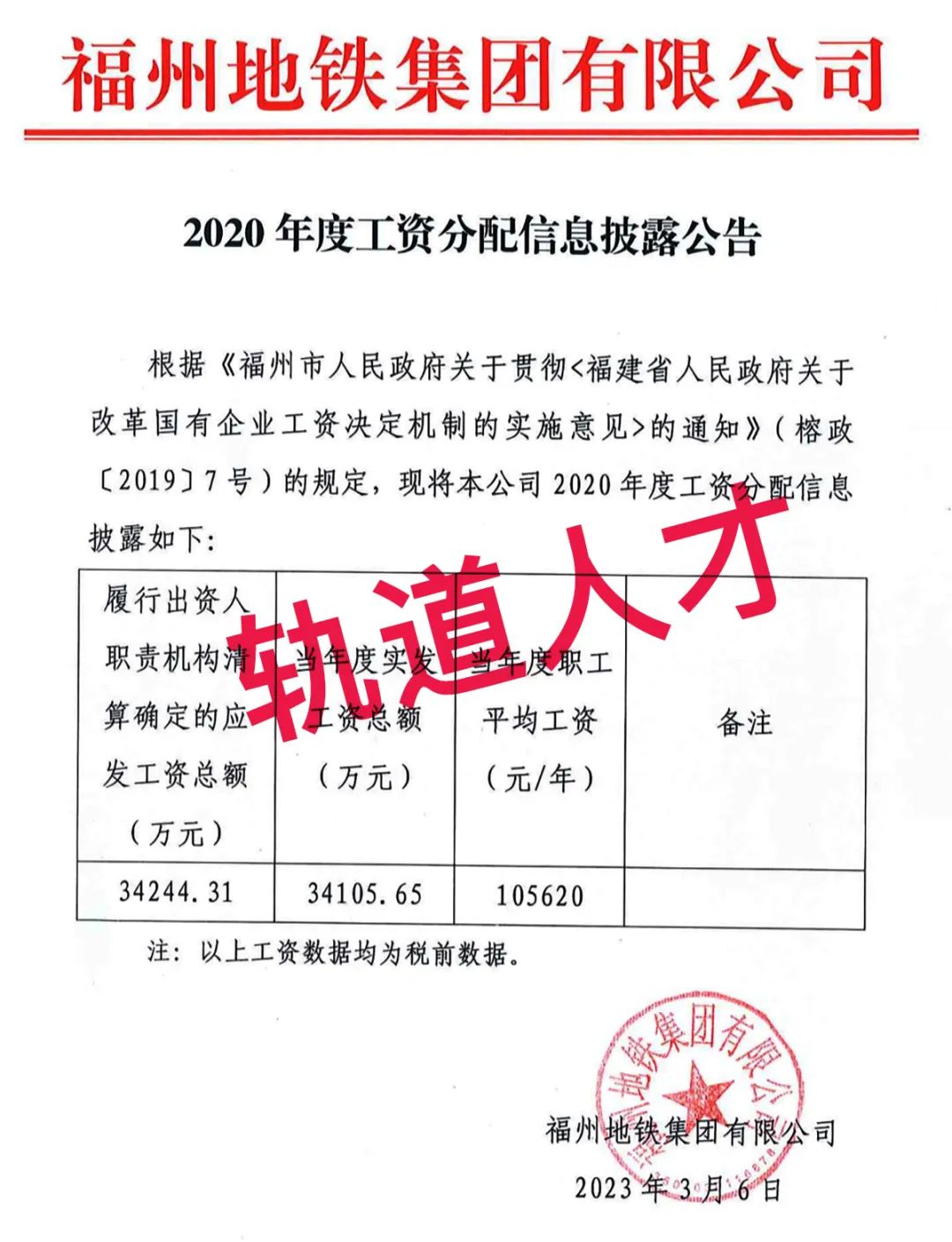 11、福州地铁集团有限公司2020年度工资分配信息披露公告