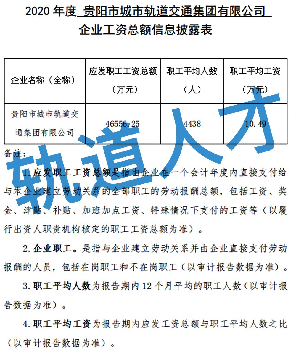 2020年度贵阳市城市轨道交通集团有限公司 企业工资总额信息披露表